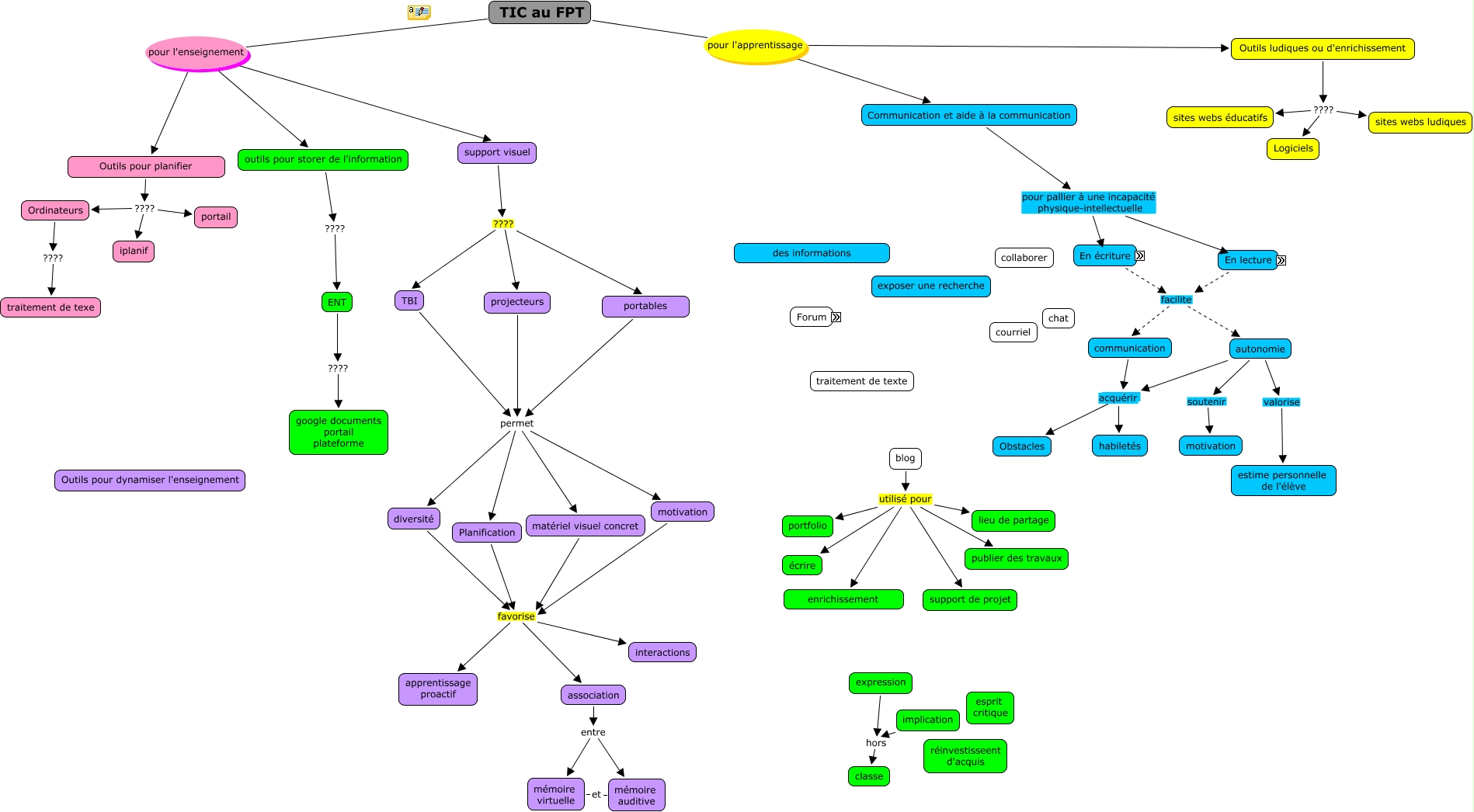 Cette carte de concepts créée avec IHMC CmapTools traite de: carte-éducnet-2, élèves en transmettant étiquette, En lecture facilite communication, TBI permet Planification, correction commune donc auto éval, TIC au FPT pour l'enseignement Outils pour planifier, l'enseignant pour poser des questions en amont, portables permet diversité, motivation favorise association, blog utilisé pour enrichissement, l'élève pour poser des questions, Communication et aide à la communication pour pallier à une incapacité physique-intellectuelle En lecture, implication hors classe, outils pour storer de l'information ???? ENT, motivation favorise interactions, utiliser les échanges pour préparer un cours, diversité favorise association, portables permet motivation, poser des questions en amont et utiliser les échanges, Planification favorise interactions, prof gagne en temps