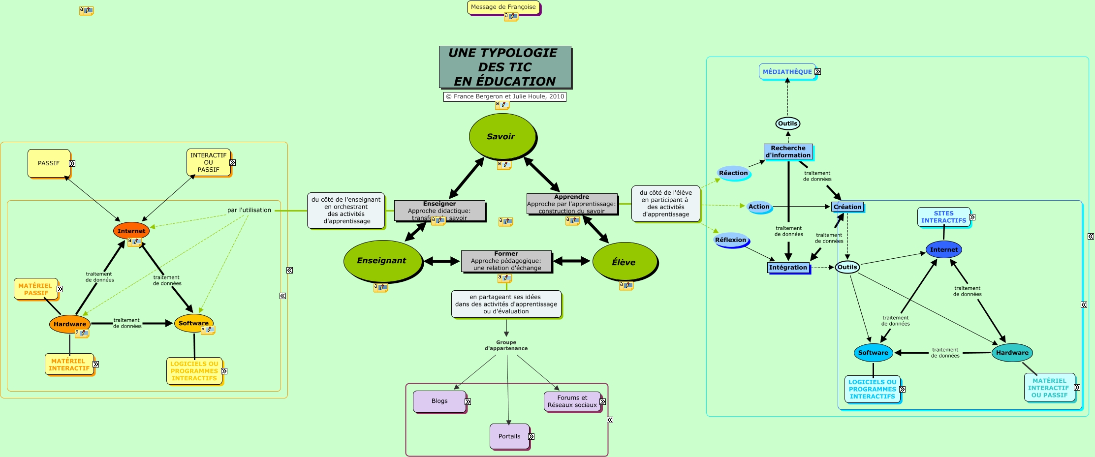 Cette carte de concepts créée avec IHMC CmapTools traite de: Typologie_TIC_Équipe_2_maj_23-02_15h, Forums Groupes d'appartenance Moodle École polytechnique, Recherche d'information traitement de données Création, blogs Internet blogger.com, wiki (wikipédia) interactif Metawiki, Création Outils Internet, Pages web Ressources pédagogiques et didactiques récit ST@R, du côté de l'élève en participant à des activités d'apprentissage Réaction Recherche d'information, Médiathèque Bibliothèques Bibliothèque nationale du Qc, Médiathèque Périodiques Le Devoir, Médiathèque Périodiques Québec Science, Médiathèque Périodiques Science et Vie, Software interactif Support PAO (Publisher), Hardware traitement de données Internet, Savoir Apprendre Approche par l'apprentissage: construction du savoir du côté de l'élève en participant à des activités d'apprentissage, Software interactif Traitement de texte (Word), Hardware interactif Caméra numérique, Intégration Outils Internet, Moncscoeur.ca serveur courrier Windows Live Hotmail, Software interactif Traitement de texte (Word), CSBF évaluation BIM