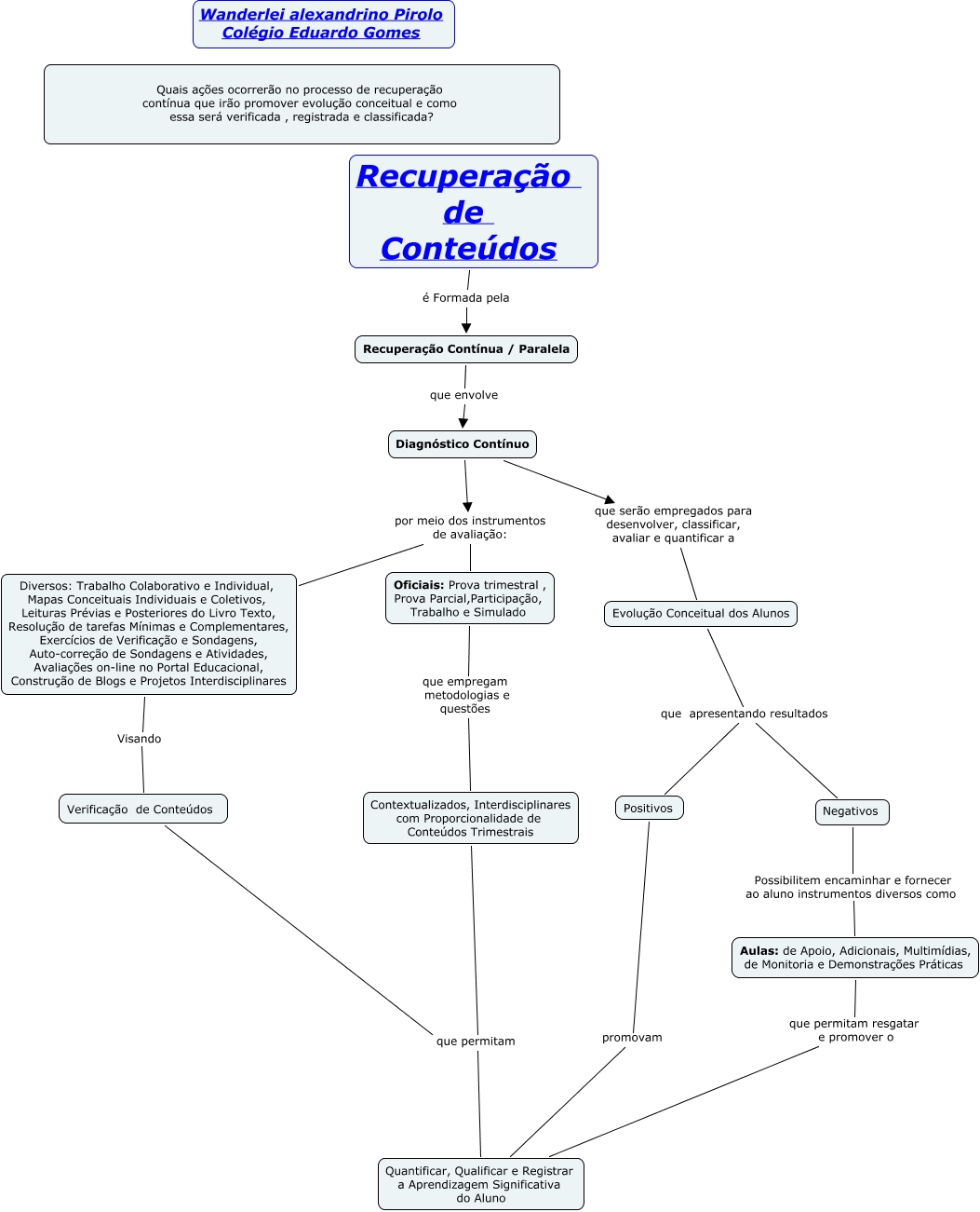 Esse mapa conceitual, produzido no IHMC CmapTools, tem a informação relacionada a: Recuperação Continua de química do Pirolo para o E.G. 2010, Verificação de Conteúdos que permitam Quantificar, Qualificar e Registrar a Aprendizagem Significativa do Aluno, Positivos promovam Quantificar, Qualificar e Registrar a Aprendizagem Significativa do Aluno, Negativos Possibilitem encaminhar e fornecer ao aluno instrumentos diversos como Aulas: de Apoio, Adicionais, Multimídias, de Monitoria e Demonstrações Práticas, Recuperação de Conteúdos é Formada pela Recuperação Contínua / Paralela, Verificação de Conteúdos que permitam Contextualizados, Interdisciplinares com Proporcionalidade de Conteúdos Trimestrais, Diagnóstico Contínuo por meio dos instrumentos de avaliação: Diversos: Trabalho Colaborativo e Individual, Mapas Conceituais Individuais e Coletivos, Leituras Prévias e Posteriores do Livro Texto, Resolução de tarefas Mínimas e Complementares, Exercícios de Verificação e Sondagens, Auto-correção de Sondagens e Atividades, Avaliações on-line no Portal Educacional, Construção de Blogs e Projetos Interdisciplinares, Oficiais: Prova trimestral , Prova Parcial,Participação, Trabalho e Simulado que empregam metodologias e questões Contextualizados, Interdisciplinares com Proporcionalidade de Conteúdos Trimestrais, Recuperação Contínua / Paralela que envolve Diagnóstico Contínuo, Diagnóstico Contínuo que serão empregados para desenvolver, classificar, avaliar e quantificar a Evolução Conceitual dos Alunos, Diagnóstico Contínuo por meio dos instrumentos de avaliação: Oficiais: Prova trimestral , Prova Parcial,Participação, Trabalho e Simulado, Evolução Conceitual dos Alunos que apresentando resultados Negativos, Aulas: de Apoio, Adicionais, Multimídias, de Monitoria e Demonstrações Práticas que permitam resgatar e promover o Quantificar, Qualificar e Registrar a Aprendizagem Significativa do Aluno, Diversos: Trabalho Colaborativo e Individual, Mapas Conceituais Individuais e Coletivos, Leituras Prévias e Posteriores do Livro Texto, Resolução de tarefas Mínimas e Complementares, Exercícios de Verificação e Sondagens, Auto-correção de Sondagens e Atividades, Avaliações on-line no Portal Educacional, Construção de Blogs e Projetos Interdisciplinares Visando Verificação de Conteúdos, Evolução Conceitual dos Alunos que apresentando resultados Positivos