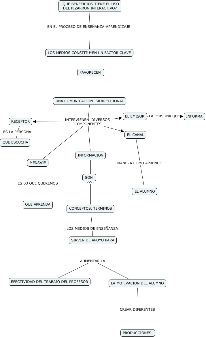 Este Cmap, tiene información relacionada con: TECNOLOIA, SIRVEN DE APOYO PARA AUMENTAR LA LA MOTIVACION DEL ALUMNO, UNA COMUNICACION BIDIRECCIONAL INTERVIENEN DIVERSOS COMPONENTES EL EMISOR, CONCEPTOS, TERMINOS LOS MEDIOS DE ENSEÑANZA SIRVEN DE APOYO PARA, SIRVEN DE APOYO PARA AUMENTAR LA EFECTIVIDAD DEL TRABAJO DEL PROFESOR, ¿QUE BENEFICIOS TIENE EL USO DEL PIZARRON INTERACTIVO? EN EL PROCESO DE ENSEÑANZA-APRENDIZAJE LOS MEDIOS CONSTITUYEN UN FACTOR CLAVE, RECEPTOR ES LA PERSONA QUE ESCUCHA, UNA COMUNICACION BIDIRECCIONAL INTERVIENEN DIVERSOS COMPONENTES EL CANAL, EL CANAL MANERA COMO APRENDE EL ALUMNO, UNA COMUNICACION BIDIRECCIONAL INTERVIENEN DIVERSOS COMPONENTES RECEPTOR, MENSAJE ES LO QUE QUEREMOS QUE APRENDA, EL EMISOR LA PERSONA QUE INFORMA, UNA COMUNICACION BIDIRECCIONAL INTERVIENEN DIVERSOS COMPONENTES INFORMACION, LA MOTIVACION DEL ALUMNO CREAR DIFERENTES PRODUCCIONES, INFORMACION ???? SON, INFORMACION ???? CONCEPTOS, TERMINOS, UNA COMUNICACION BIDIRECCIONAL INTERVIENEN DIVERSOS COMPONENTES MENSAJE
