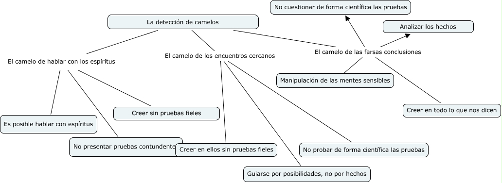 Este Cmap, tiene información relacionada con: Sin Título 1actividad 1 compu y sociedad, La detección de camelos El camelo de los encuentros cercanos Creer en ellos sin pruebas fieles, La detección de camelos El camelo de las farsas conclusiones Manipulación de las mentes sensibles, La detección de camelos El camelo de las farsas conclusiones Creer en todo lo que nos dicen, La detección de camelos El camelo de los encuentros cercanos No probar de forma científica las pruebas, La detección de camelos El camelo de las farsas conclusiones Analizar los hechos, La detección de camelos El camelo de las farsas conclusiones No cuestionar de forma científica las pruebas, La detección de camelos El camelo de hablar con los espíritus No presentar pruebas contundentes, La detección de camelos El camelo de hablar con los espíritus Es posible hablar con espíritus, La detección de camelos El camelo de hablar con los espíritus Creer sin pruebas fieles, La detección de camelos El camelo de los encuentros cercanos Guiarse por posibilidades, no por hechos