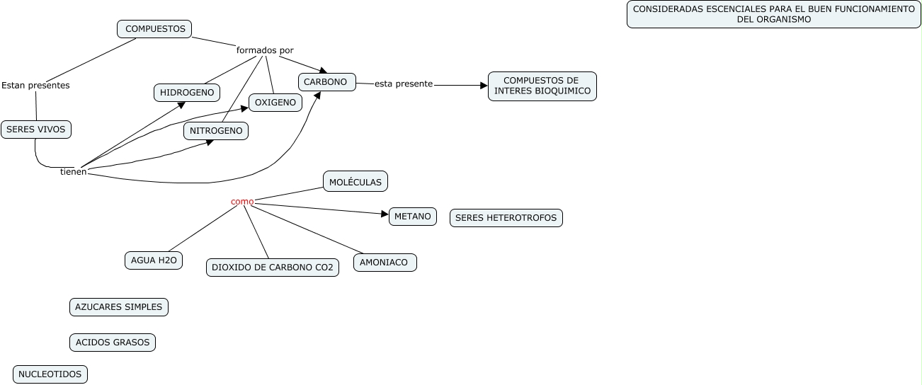 Este Cmap, tiene información relacionada con: BIOMOLECULAS 11-A, MOLÉCULAS como AGUA H2O, SERES VIVOS tienen CARBONO, SERES VIVOS tienen OXIGENO, MOLÉCULAS como DIOXIDO DE CARBONO CO2, COMPUESTOS Estan presentes SERES VIVOS, SERES VIVOS tienen NITROGENO, MOLÉCULAS como METANO, COMPUESTOS formados por CARBONO, COMPUESTOS formados por OXIGENO, SERES VIVOS tienen HIDROGENO, MOLÉCULAS como AMONIACO, CARBONO esta presente COMPUESTOS DE INTERES BIOQUIMICO, COMPUESTOS formados por NITROGENO, COMPUESTOS formados por HIDROGENO