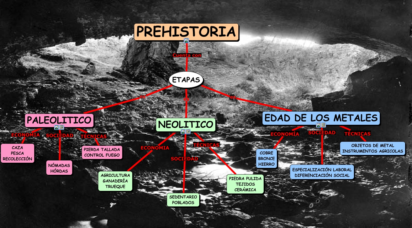 Este Cmap, tiene información relacionada con: MAPA CONCEPTUAL ETAPAS DE LA PREHISTORIA, ETAPAS es NEOLITICO, ETAPAS es PALEOLITICO, PALEOLITICO ECONOMIA CAZA PESCA RECOLECCIÓN, PREHISTORIA Cuenta con ETAPAS, NEOLITICO TÉCNICAS PIEDRA PULIDA TEJIDOS CERÁMICA, NEOLITICO ECONOMIA AGRICULTURA GANADERÍA TRUEQUE, EDAD DE LOS METALES TÉCNICAS OBJETOS DE METAL INSTRUMENTOS AGRICOLAS, PALEOLITICO SOCIEDAD NÓMADAS HÓRDAS, EDAD DE LOS METALES ECONOMÍA COBRE BRONCE HIERRO, ETAPAS es EDAD DE LOS METALES, NEOLITICO SOCIEDAD SEDENTARIO POBLADOS, PALEOLITICO TÉCNICAS PIERDA TALLADA CONTROL FUEGO, EDAD DE LOS METALES SOCIEDAD ESPECIALIZACIÓN LABORAL DIFERENCIACIÓN SOCIAL