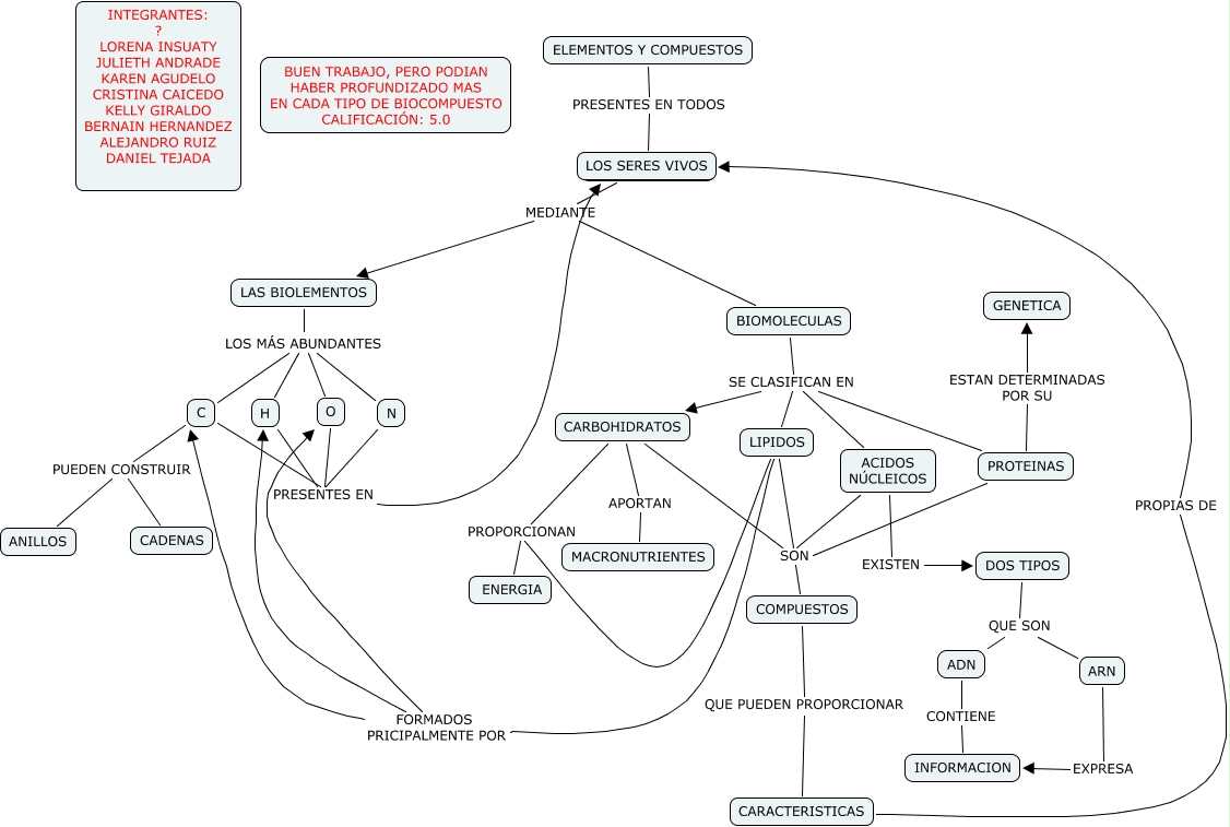 Este Cmap, tiene información relacionada con: BIOCOMPUESTOS Y BIOELEMENTOS, BIOMOLECULAS SE CLASIFICAN EN CARBOHIDRATOS, LOS SERES VIVOS MEDIANTE LAS BIOLEMENTOS, LIPIDOS FORMADOS PRICIPALMENTE POR H, PROTEINAS SON COMPUESTOS, PROTEINAS ESTAN DETERMINADAS POR SU GENETICA, LIPIDOS FORMADOS PRICIPALMENTE POR O, LAS BIOLEMENTOS LOS MÁS ABUNDANTES O, ADN CONTIENE INFORMACION, LIPIDOS PROPORCIONAN ENERGIA, ARN EXPRESA INFORMACION, N PRESENTES EN SERES HUMANOS, BIOMOLECULAS SE CLASIFICAN EN LIPIDOS, H PRESENTES EN SERES HUMANOS, DOS TIPOS QUE SON ARN, C PUEDEN CONSTRUIR CADENAS, LAS BIOLEMENTOS LOS MÁS ABUNDANTES N, DOS TIPOS QUE SON ADN, COMPUESTOS QUE PUEDEN PROPORCIONAR CARACTERISTICAS, CARBOHIDRATOS SON COMPUESTOS, C PRESENTES EN SERES HUMANOS
