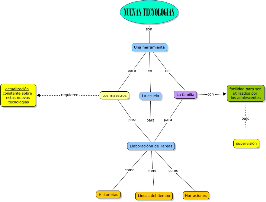 Este Cmap, tiene información relacionada con: nuevas tecnologias-jerarquias Isabel, La familia para Elaboracióhn de Tareas, Elaboracióhn de Tareas como Narraciones, Una herramienta en La ecuela, NUEVAS TECNOLOGIAS son Una herramienta, Los maestros requieren actualización constante sobre estas nuevas tecnologias, La familia con facilidad para ser utilizados por los adolescentes, La ecuela para Elaboracióhn de Tareas, Una herramienta en La familia, Una herramienta para Los maestros, facilidad para ser utilizados por los adolescentes bajo supervisión, Los maestros para Elaboracióhn de Tareas, Elaboracióhn de Tareas como Historietas, Elaboracióhn de Tareas como Lineas del tiempo
