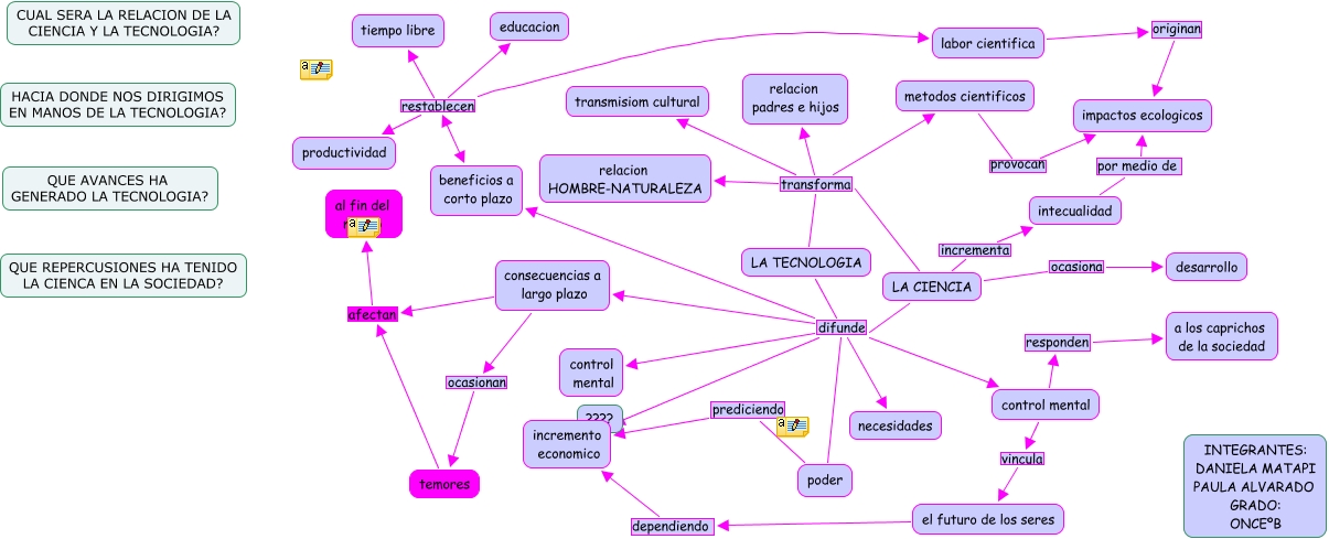 Este Cmap, tiene información relacionada con: DANIELA Y PAULA, consecuencias a largo plazo ocasionan temores, intecualidad por medio de impactos ecologicos, LA TECNOLOGIA difunde incremento economico, LA CIENCIA difunde control mental, LA TECNOLOGIA difunde necesidades, LA TECNOLOGIA difunde control mental, LA CIENCIA difunde consecuencias a largo plazo, LA CIENCIA transforma relacion padres e hijos, LA TECNOLOGIA difunde consecuencias a largo plazo, LA TECNOLOGIA transforma relacion padres e hijos, temores afectan al fin del mundo, LA TECNOLOGIA transforma transmisiom cultural, LA CIENCIA difunde necesidades, LA CIENCIA transforma transmisiom cultural, LA CIENCIA difunde poder, poder prediciendo incremento economico, LA TECNOLOGIA transforma metodos cientificos, control mental vincula el futuro de los seres, LA CIENCIA ocasiona desarrollo, LA CIENCIA transforma metodos cientificos