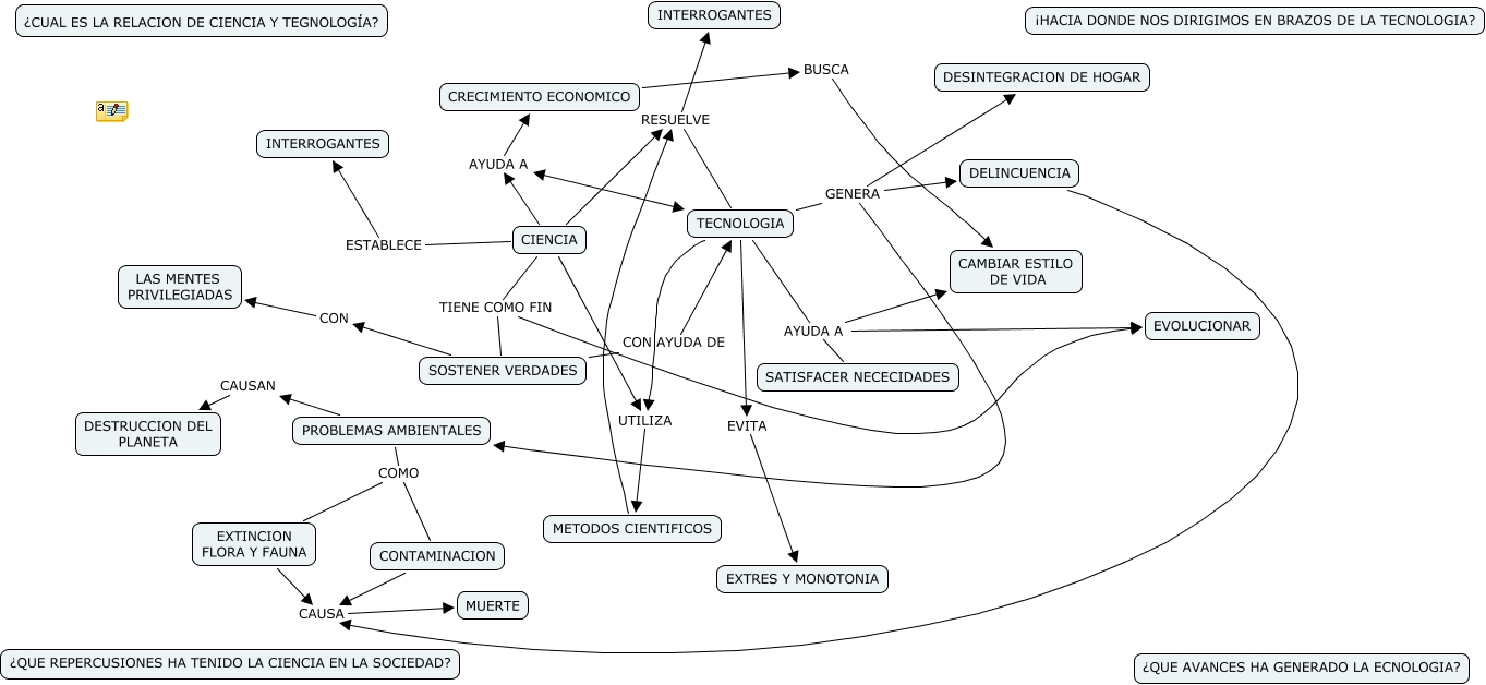 Este Cmap, tiene información relacionada con: CIENCIA Y TECNOLOGIA EDR Y OSKAR, TECNOLOGIA AYUDA A EVOLUCIONAR, CRECIMIENTO ECONOMICO BUSCA CAMBIAR ESTILO DE VIDA, CIENCIA RESUELVE INTERROGANTES, CIENCIA AYUDA A CRECIMIENTO ECONOMICO, DELINCUENCIA CAUSA MUERTE, TECNOLOGIA AYUDA A SATISFACER NECECIDADES, CIENCIA ESTABLECE INTERROGANTES, EXTINCION FLORA Y FAUNA CAUSA MUERTE, CIENCIA TIENE COMO FIN SOSTENER VERDADES, TECNOLOGIA GENERA DELINCUENCIA, CONTAMINACION CAUSA MUERTE, TECNOLOGIA RESUELVE INTERROGANTES, PROBLEMAS AMBIENTALES COMO CONTAMINACION, CIENCIA AYUDA A TECNOLOGIA, PROBLEMAS AMBIENTALES COMO EXTINCION FLORA Y FAUNA, CIENCIA TIENE COMO FIN EVOLUCIONAR, PROBLEMAS AMBIENTALES CAUSAN DESTRUCCION DEL PLANETA, TECNOLOGIA UTILIZA METODOS CIENTIFICOS, TECNOLOGIA GENERA PROBLEMAS AMBIENTALES, TECNOLOGIA EVITA EXTRES Y MONOTONIA