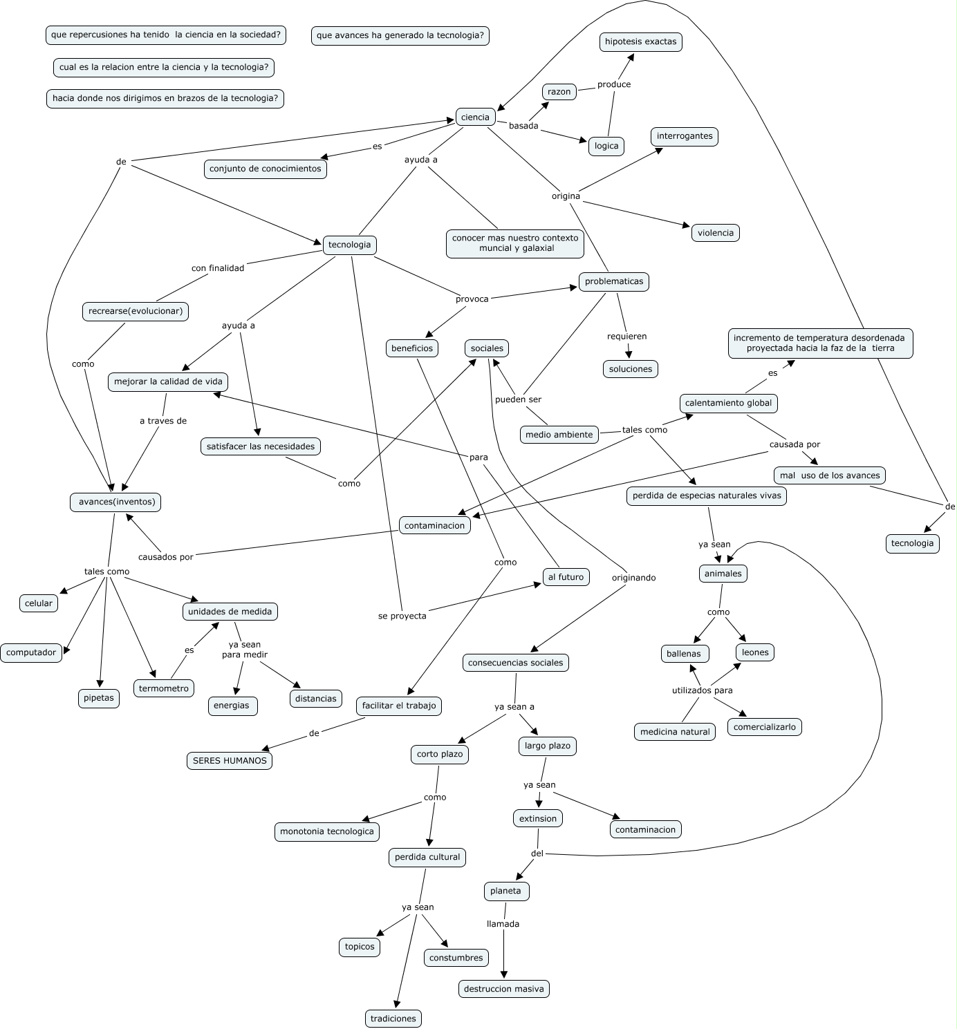 Este Cmap, tiene información relacionada con: taller de informatica CESAR MUTUMBAJOY -JENI MORALES, sociales originando consecuencias sociales, mal uso de los avances de ciencia, corto plazo como monotonia tecnologica, recrearse(evolucionar) como avances(inventos), consecuencias sociales ya sean a corto plazo, tecnologia ayuda a mejorar la calidad de vida, termometro es unidades de medida, logica produce hipotesis exactas, tecnologia con finalidad recrearse(evolucionar), ciencia es conjunto de conocimientos, avances(inventos) tales como celular, razon produce hipotesis exactas, corto plazo como perdida cultural, animales como leones, avances(inventos) tales como pipetas, avances(inventos) de tecnologia, medicina natural utilizados para comercializarlo, problematicas requieren soluciones, contaminacion causados por avances(inventos), ciencia origina violencia