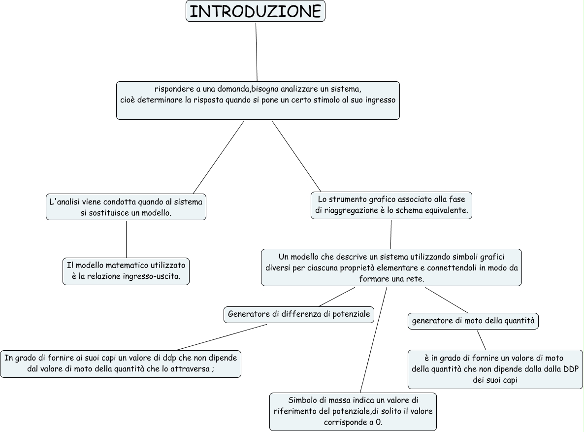 Questa Cmap, creata con IHMC CmapTools, contiene informazioni relative a: Introduzione, rispondere a una domanda,bisogna analizzare un sistema, cioè determinare la risposta quando si pone un certo stimolo al suo ingresso ???? Lo strumento grafico associato alla fase di riaggregazione è lo schema equivalente., Un modello che descrive un sistema utilizzando simboli grafici diversi per ciascuna proprietà elementare e connettendoli in modo da formare una rete. ???? Simbolo di massa indica un valore di riferimento del potenziale,di solito il valore corrisponde a 0., rispondere a una domanda,bisogna analizzare un sistema, cioè determinare la risposta quando si pone un certo stimolo al suo ingresso ???? L'analisi viene condotta quando al sistema si sostituisce un modello., Un modello che descrive un sistema utilizzando simboli grafici diversi per ciascuna proprietà elementare e connettendoli in modo da formare una rete. ???? generatore di moto della quantità, INTRODUZIONE per rispondere a una domanda,bisogna analizzare un sistema, cioè determinare la risposta quando si pone un certo stimolo al suo ingresso, Un modello che descrive un sistema utilizzando simboli grafici diversi per ciascuna proprietà elementare e connettendoli in modo da formare una rete. ???? Generatore di differenza di potenziale, generatore di moto della quantità ???? è in grado di fornire un valore di moto della quantità che non dipende dalla dalla DDP dei suoi capi, L'analisi viene condotta quando al sistema si sostituisce un modello. ???? Il modello matematico utilizzato è la relazione ingresso-uscita., Generatore di differenza di potenziale ???? In grado di fornire ai suoi capi un valore di ddp che non dipende dal valore di moto della quantità che lo attraversa ;, Lo strumento grafico associato alla fase di riaggregazione è lo schema equivalente. ???? Un modello che descrive un sistema utilizzando simboli grafici diversi per ciascuna proprietà elementare e connettendoli in modo da formare una rete.