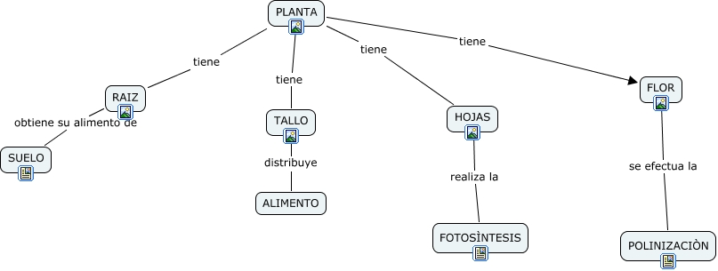 Aquest mapa conceptual conté informació relacionada amb: PLANTAS CON IMÀGENES, PLANTA tiene FLOR, PLANTA tiene RAIZ, HOJAS realiza la FOTOSÌNTESIS, FLOR se efectua la POLINIZACIÒN, RAIZ obtiene su alimento de SUELO, PLANTA tiene TALLO, PLANTA tiene HOJAS, TALLO distribuye ALIMENTO