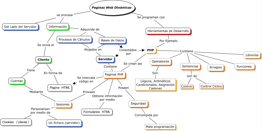 Este Cmap, tiene información relacionada con: Paginas Web Dinamicas, PHP Contiene Operadores, Información Adquirida de Procesos de Cálculos, Procesos de Cálculos Alojados en Servidor, Sentencias son de Control, Herramientas de Desarrollo Por Ejemplo PHP, Sesiones Personalizan por medio de Cookies (cliente), Servidor Contiene Paginas PHP, PHP Se crean las Paginas PHP, Paginas PHP Se intercala código en Pagina HTML, Información Se envía al Cliente, Bases de Datos Alojados en Servidor, Paginas PHP Proveen Sesiones, Cliente Tiene Cuentas, Sesiones Personalizan por medio de Un fichero (servidor), Paginas Web Dinámicas se procesa Del Lado del Servidor, PHP Contiene Funciones, Cuentas Mediante Sesiones, Información Adquirida de Bases de Datos, PHP Contiene Arreglos, Operadores Son Lógicos, Aritméticos Condicionales, Asignación Cadenas