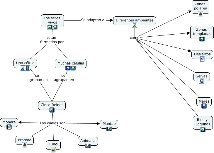 Este Cmap, tiene información relacionada con: Los Seres Vivos - Isabel, Cinco Reinos Los cuales son Animalia, Muchas células se agrupan en Cinco Reinos, Cinco Reinos Los cuales son Monera, Una célula se agrupan en Cinco Reinos, Cinco Reinos Los cuales son Fungi, Los seres vivos Se adaptan a Diferentes ambientes, Diferentes ambientes como Rios y Lagunas, Diferentes ambientes como Zonas polares, Los seres vivos estan formados por Una célula, Diferentes ambientes como Selvas, Cinco Reinos Los cuales son Plantae, Los seres vivos estan formados por Muchas células, Cinco Reinos Los cuales son Protista, Diferentes ambientes como Desiertos, Diferentes ambientes como Zonas templadas, Diferentes ambientes como Mares