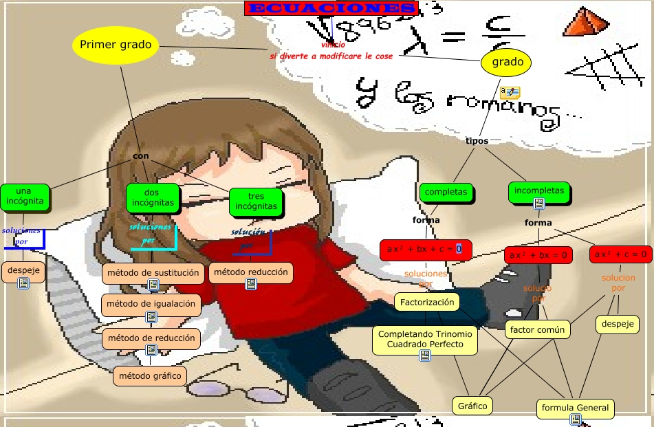 Questa Cmap, creata con IHMC CmapTools, contiene informazioni relative a: Ecuaciones Martha Nava, <math xmlns="http://www.w3.org/1998/Math/MathML"> <mrow> <mtext> a </mtext> <mmultiscripts> <mtext> x </mtext> <none/> <mtext> 2 </mtext> </mmultiscripts> <mtext> + bx = 0 </mtext> </mrow> </math> solucio por Gráfico, una incógnita soluciones por despeje, dos incógnitas soluciones por método de igualación, incompletas forma <math xmlns="http://www.w3.org/1998/Math/MathML"> <mrow> <mtext> a </mtext> <mmultiscripts> <mtext> x </mtext> <none/> <mtext> 2 </mtext> </mmultiscripts> <mtext> + bx = 0 </mtext> </mrow> </math>, <math xmlns="http://www.w3.org/1998/Math/MathML"> <mrow> <mtext> a </mtext> <mmultiscripts> <mtext> x </mtext> <none/> <mtext> 2 </mtext> </mmultiscripts> <mtext> + bx + c = 0 </mtext> </mrow> </math> soluciones por Completando Trinomio Cuadrado Perfecto, <math xmlns="http://www.w3.org/1998/Math/MathML"> <mrow> <mtext> a </mtext> <mmultiscripts> <mtext> x </mtext> <none/> <mtext> 2 </mtext> </mmultiscripts> <mtext> + c = 0 </mtext> </mrow> </math> solucion por formula General, <math xmlns="http://www.w3.org/1998/Math/MathML"> <mrow> <mtext> a </mtext> <mmultiscripts> <mtext> x </mtext> <none/> <mtext> 2 </mtext> </mmultiscripts> <mtext> + bx = 0 </mtext> </mrow> </math> solucio por Gráfico, ECUACIONES vinicio si diverte a modificare le cose grado, Primer grado con tres incógnitas, <math xmlns="http://www.w3.org/1998/Math/MathML"> <mrow> <mtext> a </mtext> <mmultiscripts> <mtext> x </mtext> <none/> <mtext> 2 </mtext> </mmultiscripts> <mtext> + c = 0 </mtext> </mrow> </math> solucion por despeje, incompletas forma <math xmlns="http://www.w3.org/1998/Math/MathML"> <mrow> <mtext> a </mtext> <mmultiscripts> <mtext> x </mtext> <none/> <mtext> 2 </mtext> </mmultiscripts> <mtext> + c = 0 </mtext> </mrow> </math>, dos incógnitas soluciones por método gráfico, dos incógnitas soluciones por método de reducción, completas forma <math xmlns="http://www.w3.org/1998/Math/MathML"> <mrow> <mtext> a </mtext> <mmultiscripts> <mtext> x </mtext> <none/> <mtext> 2 </mtext> </mmultiscripts> <mtext> + bx + c = 0 </mtext> </mrow> </math>, Primer grado con una incógnita, <math xmlns="http://www.w3.org/1998/Math/MathML"> <mrow> <mtext> a </mtext> <mmultiscripts> <mtext> x </mtext> <none/> <mtext> 2 </mtext> </mmultiscripts> <mtext> + bx + c = 0 </mtext> </mrow> </math> soluciones por formula General, ECUACIONES vinicio si diverte a modificare le cose Primer grado, <math xmlns="http://www.w3.org/1998/Math/MathML"> <mrow> <mtext> a </mtext> <mmultiscripts> <mtext> x </mtext> <none/> <mtext> 2 </mtext> </mmultiscripts> <mtext> + c = 0 </mtext> </mrow> </math> solucion por Gráfico, <math xmlns="http://www.w3.org/1998/Math/MathML"> <mrow> <mtext> a </mtext> <mmultiscripts> <mtext> x </mtext> <none/> <mtext> 2 </mtext> </mmultiscripts> <mtext> + bx + c = 0 </mtext> </mrow> </math> soluciones por Gráfico, Primer grado con dos incógnitas
