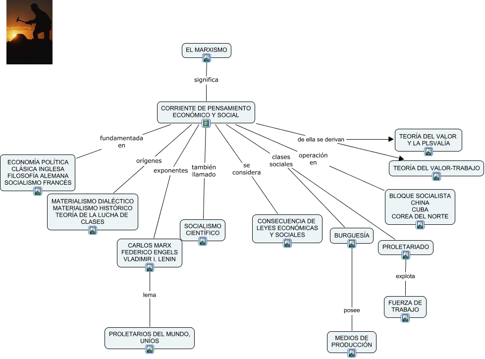 Este Cmap, tiene información relacionada con: EL MARXISMO, LETY GONZÁLEZ, CORRIENTE DE PENSAMIENTO ECONÓMICO Y SOCIAL se considera CONSECUENCIA DE LEYES ECONÓMICAS Y SOCIALES, PROLETARIADO explota FUERZA DE TRABAJO, CORRIENTE DE PENSAMIENTO ECONÓMICO Y SOCIAL de ella se derivan TEORÍA DEL VALOR-TRABAJO, CORRIENTE DE PENSAMIENTO ECONÓMICO Y SOCIAL exponentes CARLOS MARX FEDERICO ENGELS VLADIMIR I. LENIN, CORRIENTE DE PENSAMIENTO ECONÓMICO Y SOCIAL clases sociales BURGUESÍA, CORRIENTE DE PENSAMIENTO ECONÓMICO Y SOCIAL también llamado SOCIALISMO CIENTÍFICO, CARLOS MARX FEDERICO ENGELS VLADIMIR I. LENIN lema PROLETARIOS DEL MUNDO, UNÍOS, EL MARXISMO significa CORRIENTE DE PENSAMIENTO ECONÓMICO Y SOCIAL, BURGUESÍA posee MEDIOS DE PRODUCCIÓN, CORRIENTE DE PENSAMIENTO ECONÓMICO Y SOCIAL clases sociales PROLETARIADO, CORRIENTE DE PENSAMIENTO ECONÓMICO Y SOCIAL orígenes MATERIALISMO DIALÉCTICO MATERIALISMO HISTÓRICO TEORÍA DE LA LUCHA DE CLASES, CORRIENTE DE PENSAMIENTO ECONÓMICO Y SOCIAL de ella se derivan TEORÍA DEL VALOR Y LA PLSVALÍA, CORRIENTE DE PENSAMIENTO ECONÓMICO Y SOCIAL operación en BLOQUE SOCIALISTA CHINA CUBA COREA DEL NORTE, CORRIENTE DE PENSAMIENTO ECONÓMICO Y SOCIAL fundamentada en ECONOMÍA POLÍTICA CLÁSICA INGLESA FILOSOFÍA ALEMANA SOCIALISMO FRANCÉS
