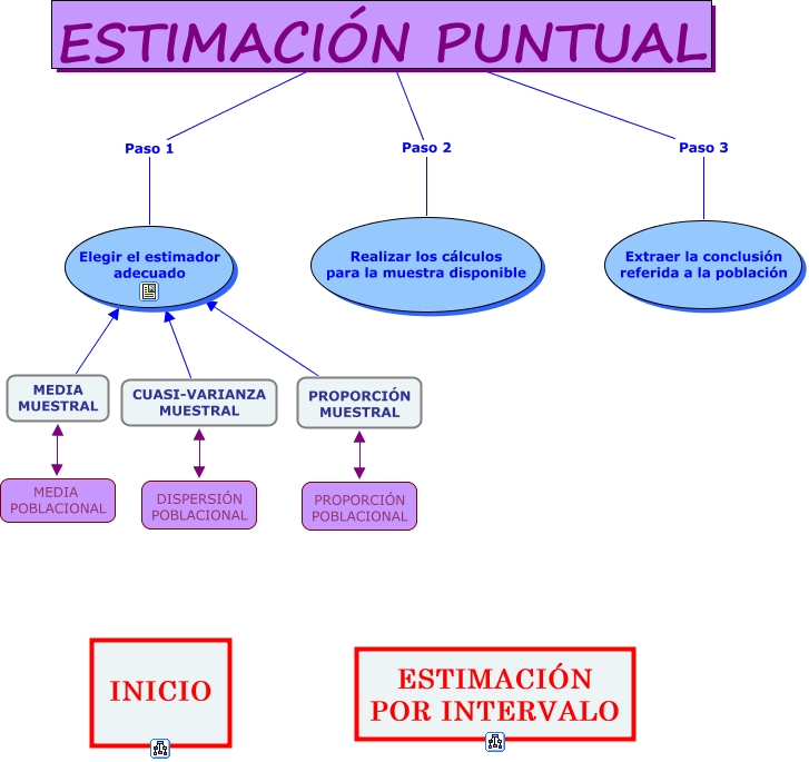 Este Cmap, tiene información relacionada con: Estimacion_puntual, PROPORCIÓN POBLACIONAL PROPORCIÓN MUESTRAL Elegir el estimador adecuado, DISPERSIÓN POBLACIONAL CUASI-VARIANZA MUESTRAL Elegir el estimador adecuado, MEDIA POBLACIONAL MEDIA MUESTRAL Elegir el estimador adecuado, ESTIMACIÓN PUNTUAL Paso 1 Elegir el estimador adecuado, ESTIMACIÓN PUNTUAL Paso 2 Realizar los cálculos para la muestra disponible, ESTIMACIÓN PUNTUAL Paso 3 Extraer la conclusión referida a la población