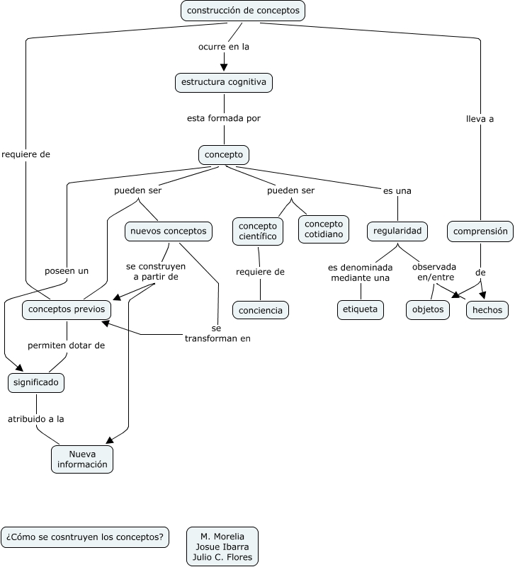 Este Cmap, tiene información relacionada con: Monica Morelia Construcción de Conceptos, regularidad observada en/entre hechos, concepto pueden ser concepto científico, regularidad es denominada mediante una etiqueta, estructura cognitiva esta formada por concepto, concepto poseen un significado, regularidad observada en/entre objetos, concepto pueden ser concepto cotidiano, nuevos conceptos se construyen a partir de conceptos previos, concepto es una regularidad, comprensión de hechos, nuevos conceptos se transforman en conceptos previos, comprensión de objetos, construcción de conceptos requiere de conceptos previos, concepto científico requiere de conciencia, construcción de conceptos lleva a comprensión, nuevos conceptos se construyen a partir de Nueva información, construcción de conceptos ocurre en la estructura cognitiva, significado atribuido a la Nueva información, concepto pueden ser conceptos previos, conceptos previos permiten dotar de significado