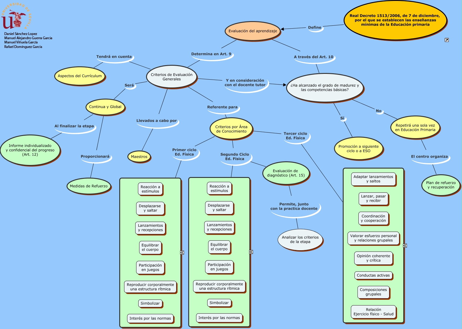 Este Cmap, tiene información relacionada con: Evaluacion, Real Decreto 1513/2006, de 7 de diciembre, por el que se establecen las enseñanzas mínimas de la Educación primaria Define Evaluación del aprendizaje, Criterios por Área de Conocimiento Tercer ciclo Ed. Física 8 criterios, Continua y Global Al finalizar la etapa Informe individualizado y confidencial del progreso (Art. 12), Criterios de Evaluación Generales Será Continua y Global, Criterios de Evaluación Generales Tendrá en cuenta Aspectos del Currículum, Evaluación del aprendizaje A través del Art. 10 ¿Ha alcanzado el grado de madurez y las competencias básicas?, ¿Ha alcanzado el grado de madurez y las competencias básicas? No Repetirá una sola vez en Educación Primaria, Criterios de Evaluación Generales Llevados a cabo por Maestros, Repetirá una sola vez en Educación Primaria El centro organiza Plan de refuerzo y recuperación, ¿Ha alcanzado el grado de madurez y las competencias básicas? Sí Promoción a siguiente ciclo o a ESO, Criterios por Área de Conocimiento Primer ciclo Ed. Física 8 criterios, Criterios por Área de Conocimiento Segundo Ciclo Ed. Física 8 criterios, Criterios por Área de Conocimiento Segundo Ciclo Ed. Física Evaluación de diagnóstico (Art. 15), Criterios de Evaluación Generales Y en consideración con el docente tutor ¿Ha alcanzado el grado de madurez y las competencias básicas?, Continua y Global Proporcionará Medidas de Refuerzo, Evaluación del aprendizaje Determina en Art. 9 Criterios de Evaluación Generales, Criterios de Evaluación Generales Referente para Criterios por Área de Conocimiento, Evaluación de diagnóstico (Art. 15) Permite, junto con la practica docente Analizar los criterios de la etapa