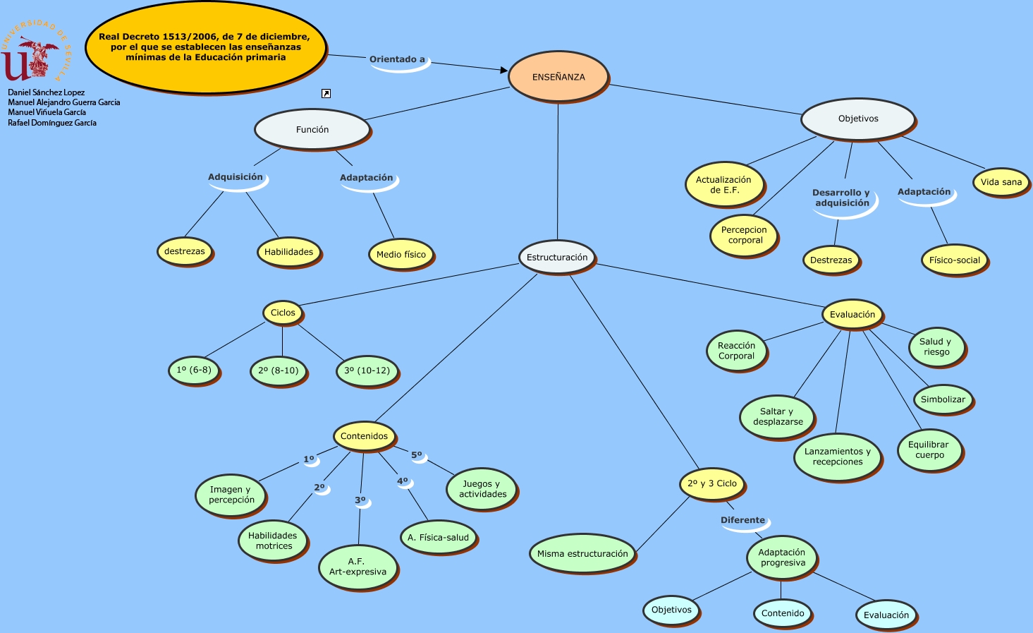 Este Cmap, tiene información relacionada con: Enseñanza, Función Adquisición Habilidades, Estructuración ???? Misma estructuración, Adaptación progresiva ???? Objetivos, Adaptación progresiva E Evaluación, Evaluación ???? Equilibrar cuerpo, Estructuración ???? Evaluación, Real Decreto 1513/2006, de 7 de diciembre, por el que se establecen las enseñanzas mínimas de la Educación primaria Orientado a ENSEÑANZA, Objetivos Adaptación Físico-social, Evaluación ???? Salud y riesgo, Contenidos 2º Habilidades motrices, Objetivos ???? Percepcion corporal, Contenidos 4º A. Física-salud, Estructuración ???? Ciclos, Evaluación ???? Saltar y desplazarse, Ciclos ???? 3º (10-12), Estructuración ???? Contenidos, ENSEÑANZA ???? Objetivos, Contenidos 3º A.F. Art-expresiva, Estructuración ???? 2º y 3 Ciclo, Contenidos 1º Imagen y percepción