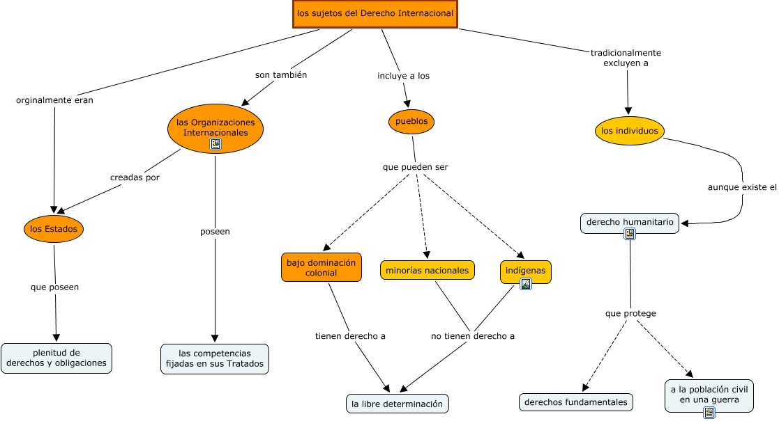 Este Cmap, tiene información relacionada con: Sujetos de DI, derecho humanitario que protege a la población civil en una guerra, indígenas no tienen derecho a la libre determinación, los individuos aunque existe el derecho humanitario, los sujetos del Derecho Internacional orginalmente eran los Estados, los sujetos del Derecho Internacional incluye a los pueblos, pueblos que pueden ser indígenas, pueblos que pueden ser minorías nacionales, las Organizaciones Internacionales poseen las competencias fijadas en sus Tratados, derecho humanitario que protege derechos fundamentales, minorías nacionales no tienen derecho a la libre determinación, los sujetos del Derecho Internacional tradicionalmente excluyen a los individuos, bajo dominación colonial tienen derecho a la libre determinación, los Estados que poseen plenitud de derechos y obligaciones, los sujetos del Derecho Internacional son también las Organizaciones Internacionales, pueblos que pueden ser bajo dominación colonial, las Organizaciones Internacionales creadas por los Estados
