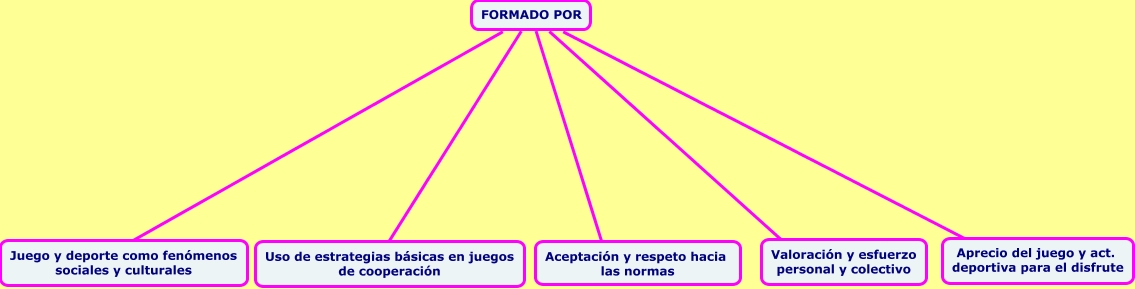 Este Cmap, tiene información relacionada con: juegos y actividades deportivas, ciclo 3, FORMADO POR ???? Valoración y esfuerzo personal y colectivo, FORMADO POR ???? Juego y deporte como fenómenos sociales y culturales, FORMADO POR ???? Uso de estrategias básicas en juegos de cooperación, FORMADO POR ???? Aceptación y respeto hacia las normas, FORMADO POR ???? Aprecio del juego y act. deportiva para el disfrute