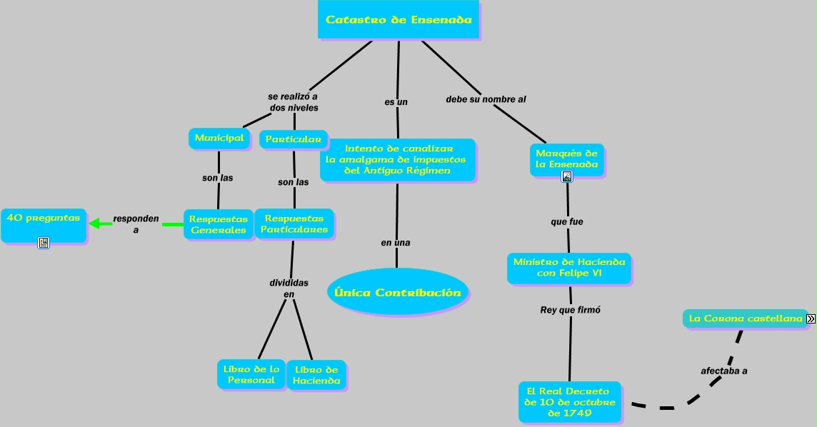 Este Cmap, tiene información relacionada con: Tarea 2 No Presencial, Catastro de Ensenada se realizó a dos niveles Particular, 1751 operación piloto Pajares, Respuestas Particulares divididas en Libro de Hacienda, Ministro de Hacienda con Felipe VI Rey que firmó El Real Decreto de 10 de octubre de 1749, Catastro de Ensenada debe su nombre al Marqués de la Ensenada, Respuestas Generales responden a 40 preguntas, Asturias comenzó a catastrarse en el año 1751, La corona castellana esto es C.León, La corona castellana esto es La Rioja, La corona castellana esto es Andalucia, La corona castellana esto es Madrid, Particular son las Respuestas Particulares, Marqués de la Ensenada que fue Ministro de Hacienda con Felipe VI, La corona castellana esto es Galicia, La Corona castellana afectaba a El Real Decreto de 10 de octubre de 1749, Asturias a cargo de El Comisionado Arias de Saavedra, La corona castellana esto es Cantabria, Catastro de Ensenada es un Intento de canalizar la amalgama de impuestos del Antiguo Régimen, Intento de canalizar la amalgama de impuestos del Antiguo Régimen en una Única Contribución, La corona castellana esto es La Mancha