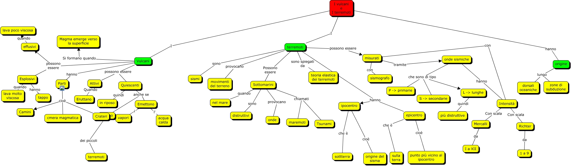 Questa Cmap, creata con IHMC CmapTools, contiene informazioni relative a: I vulcani e I terremoti, Parti cioè Camini, misurati tramite onde sismiche, I vulcani e I terremoti I terremoti, creano dei piccoli terremoti, Esplosivi hanno tappo, Vulcani possono essere Attivi, Quiescenti anche se Emettono, misurati con Intensità, epicentro che è sulla terra, terremoti sono sismi, Intensità Con scala Richter, Parti cioè cmera magmatica, Attivi Quando Eruttano, L -> lunghe quindi più distruttive, Vulcani possono essere Esplosivi, Sottomarini provocano onde, Intensità Con scala Mercalli, terremoti provocano movimenti del terreno, terremoti hanno epicentro, terremoti possono essere misurati