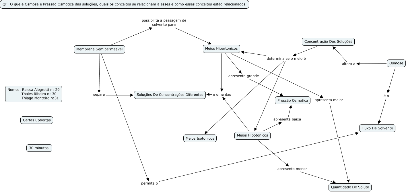 Esse mapa conceitual, produzido no IHMC CmapTools, tem a informação relacionada a: Osmose - Raissa, Thales, Thiago, Concentração Das Soluções determina se o meio é Meios Hipertonicos, Meios Hipotonicos apresenta baixa Pressão Osmótica, Meios Hipotonicos apresenta menor Quantidade De Soluto, Osmose é o Fluxo De Solvente, Membrana Semipermeavel separa Soluções De Concentrações Diferentes, Concentração Das Soluções determina se o meio é Meios Hipotonicos, Membrana Semipermeavel permite o Fluxo De Solvente, Meios Hipotonicos é uma das Soluções De Concentrações Diferentes, Meios Hipertonicos é uma das Soluções De Concentrações Diferentes, Concentração Das Soluções determina se o meio é Meios Isotonicos, Membrana Semipermeavel possibilita a passagem de solvente para Meios Hipertonicos, Osmose altera a Concentração Das Soluções, Meios Hipertonicos apresenta grande Pressão Osmótica, Meios Hipertonicos apresenta maior Quantidade De Soluto