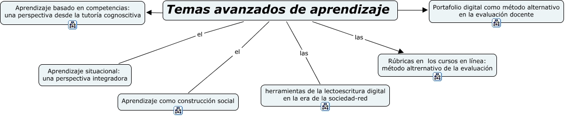 Este Cmap, tiene información relacionada con: temas avanzados de aprendizaje(matriz), Temas avanzados de aprendizaje el Aprendizaje como construcción social, Temas avanzados de aprendizaje el Aprendizaje basado en competencias: una perspectiva desde la tutoría cognoscitiva, Temas avanzados de aprendizaje las herramientas de la lectoescritura digital en la era de la sociedad-red, Temas avanzados de aprendizaje las Rúbricas en los cursos en línea: método altrernativo de la evaluación, Temas avanzados de aprendizaje el Aprendizaje situacional: una perspectiva integradora, Temas avanzados de aprendizaje el Portafolio digital como método alternativo en la evaluación docente