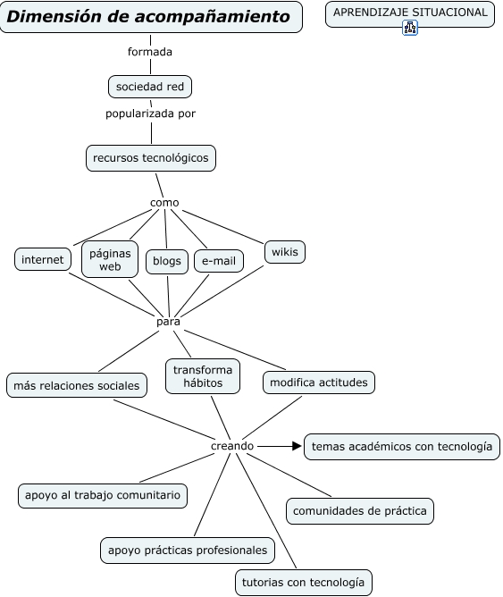 Este Cmap, tiene información relacionada con: dimensión de acompañamiento, páginas web para modifica actitudes, wikis para modifica actitudes, páginas web para transforma hábitos, e-mail para transforma hábitos, más relaciones sociales creando temas académicos con tecnología, modifica actitudes creando apoyo al trabajo comunitario, internet para transforma hábitos, más relaciones sociales creando comunidades de práctica, más relaciones sociales creando apoyo al trabajo comunitario, sociedad red popularizada por recursos tecnológicos, transforma hábitos creando apoyo prácticas profesionales, e-mail para modifica actitudes, modifica actitudes creando temas académicos con tecnología, blogs para transforma hábitos, internet para más relaciones sociales, transforma hábitos creando comunidades de práctica, blogs para más relaciones sociales, modifica actitudes creando tutorias con tecnología, blogs para modifica actitudes, transforma hábitos creando temas académicos con tecnología