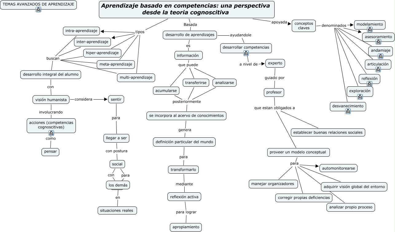 Este Cmap, tiene información relacionada con: aprendizaje basado en competencias, acumularse posteriormente se incorpora al acervo de conocimientos, analizarse posteriormente se incorpora al acervo de conocimientos, se incorpora al acervo de conocimientos genera definición particular del mundo, definición particular del mundo para transformarlo, desarrollar competencias a nivel de experto, proveer un modelo conceptual para corregir propias deficiencias, desarrollo integral del alumno con visión humanista, social para ????, visión humanista involucrando acciones (competencias cognoscitivas), Aprendizaje basado en competencias: una perspectiva desde la teoria cognoscitiva tipos intra-aprendizaje, acciones (competencias cognoscitivas) como pensar, visión humanista considera sentir, información que puede acumularse, experto guiado por profesor, conceptos claves denominados andamiaje, Aprendizaje basado en competencias: una perspectiva desde la teoria cognoscitiva tipos meta-aprendizaje, proveer un modelo conceptual para analizar propio proceso, conceptos claves denominados reflexión, transferirse posteriormente se incorpora al acervo de conocimientos, sentir para llegar a ser