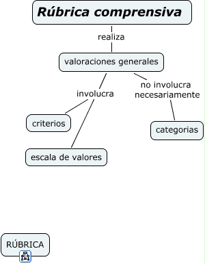 Este Cmap, tiene información relacionada con: rúbrica comprensiva, valoraciones generales involucra escala de valores, valoraciones generales involucra criterios, valoraciones generales no involucra necesariamente categorias, Rúbrica comprensiva realiza valoraciones generales