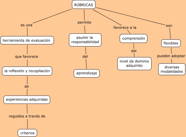 Este Cmap, tiene información relacionada con: RÚBRICAS, herramienta de evaluación que favorece la reflexión y recopilación, RÚBRICAS permite asumir la responsabilidad, experiencias adquiridas reguidos a través de criterios, la reflexión y recopilación de experiencias adquiridas, RÚBRICAS favorece a la comprensión, flexibles pueden adoptar diversas modalidades, RÚBRICAS es una herramienta de evaluación, asumir la responsabilidad del aprendizaje, comprensión del nivel de dominio adquirido, RÚBRICAS son flexibles