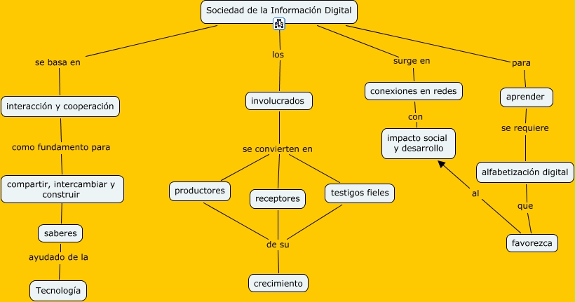 Este Cmap, tiene información relacionada con: HERRAMIENTAS DE LECTOESCRITURA DIGITAL, alfabetización digital que favorezca, favorezca al impacto social y desarrollo, involucrados se convierten en receptores, receptores de su productores, involucrados se convierten en productores, compartir, intercambiar y construir ???? saberes, Sociedad de la Información Digital los involucrados, involucrados se convierten en testigos fieles, saberes ayudado de la Tecnología, interacción y cooperación como fundamento para compartir, intercambiar y construir, receptores de su crecimiento, receptores de su testigos fieles, Sociedad de la Información Digital para aprender, conexiones en redes con impacto social y desarrollo, Sociedad de la Información Digital surge en conexiones en redes, Sociedad de la Información Digital se basa en interacción y cooperación, aprender se requiere alfabetización digital