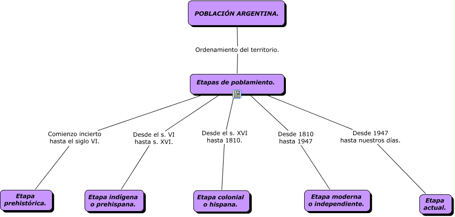 Este Cmap, tiene información relacionada con: Población de la Argentina, Etapas de poblamiento. Desde el s. VI hasta s. XVI. Etapa indígena o prehispana., POBLACIÓN ARGENTINA. Ordenamiento del territorio. Etapas de poblamiento., Etapas de poblamiento. Desde 1810 hasta 1947 Etapa moderna o independiente., Etapas de poblamiento. Desde el s. XVI hasta 1810. Etapa colonial o hispana., Etapas de poblamiento. Comienzo incierto hasta el siglo VI. Etapa prehistórica., Etapas de poblamiento. Desde 1947 hasta nuestros días. Etapa actual.