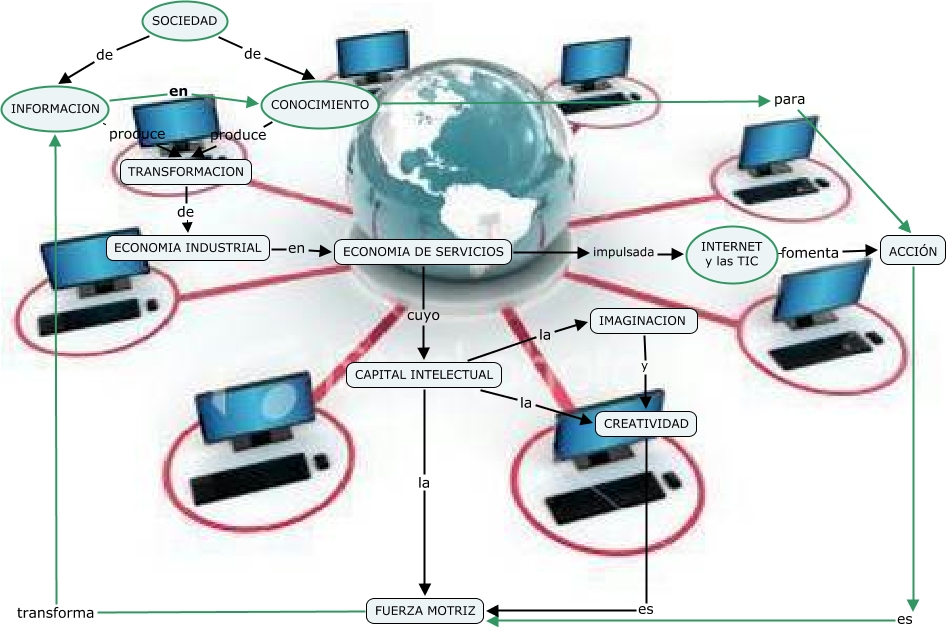 Este Cmap, tiene información relacionada con: MAPA CONCEPTUAL 2, CAPITAL INTELECTUAL la IMAGINACION, SOCIEDAD de CONOCIMIENTO, TRANSFORMACION de ECONOMIA INDUSTRIAL, CAPITAL INTELECTUAL la CREATIVIDAD, CONOCIMIENTO para ACCIÓN, ECONOMIA INDUSTRIAL en ECONOMIA DE SERVICIOS, ECONOMIA DE SERVICIOS impulsada INTERNET y las TIC, IMAGINACION y CREATIVIDAD, INTERNET y las TIC fomenta ACCIÓN, CONOCIMIENTO produce TRANSFORMACION, ECONOMIA DE SERVICIOS cuyo CAPITAL INTELECTUAL, CONOCIMIENTO para ACCIÓN, ECONOMIA DE SERVICIOS cuyo CAPITAL INTELECTUAL, INFORMACION en CONOCIMIENTO, CAPITAL INTELECTUAL la FUERZA MOTRIZ, FUERZA MOTRIZ transforma INFORMACION, ACCIÓN es FUERZA MOTRIZ, INFORMACION produce TRANSFORMACION, SOCIEDAD de INFORMACION, CREATIVIDAD es FUERZA MOTRIZ