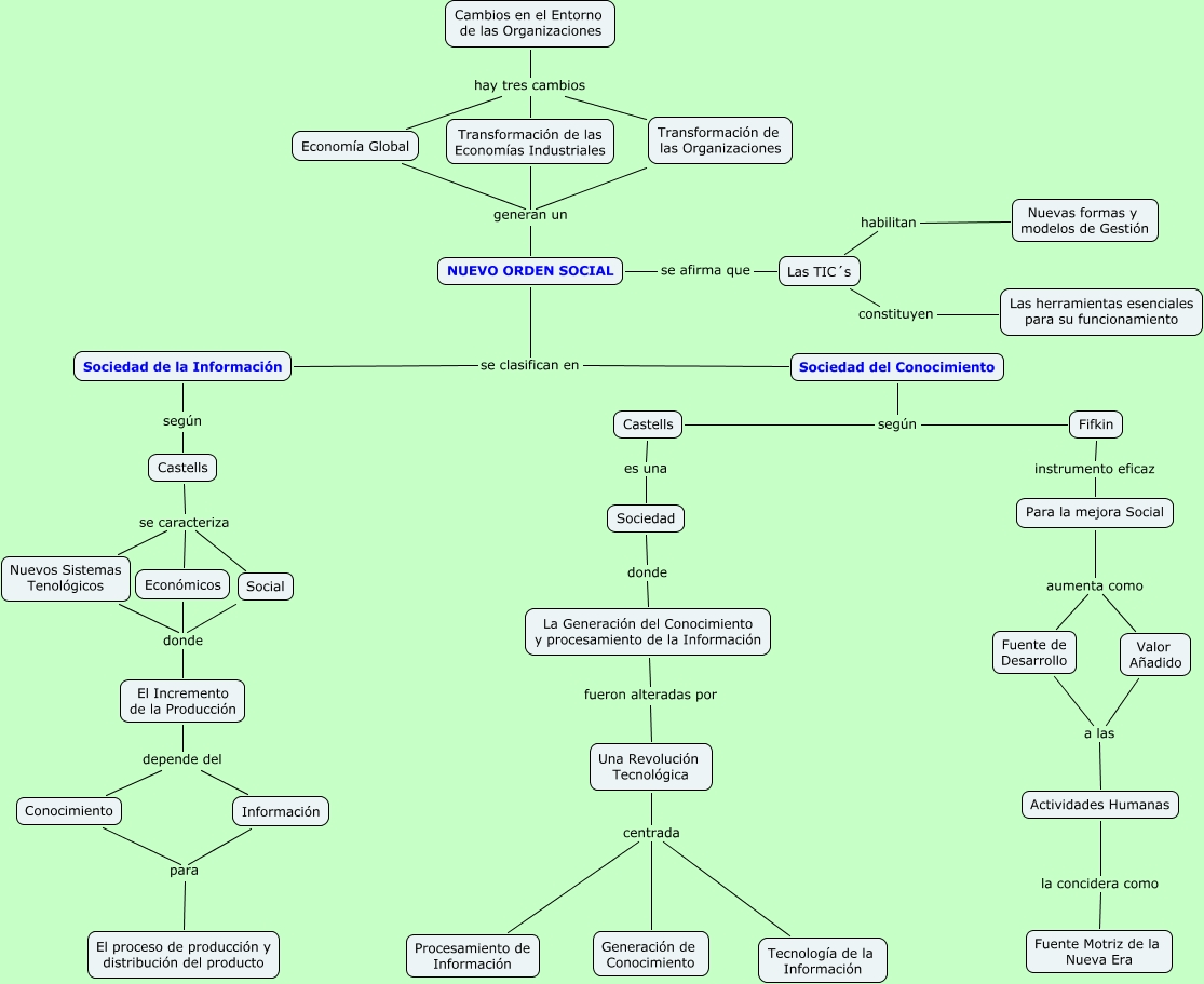 Este Cmap, tiene información relacionada con: Nuevo Orden Social, Social donde El Incremento de la Producción, Castells se caracteriza Económicos, Las TIC´s constituyen Las herramientas esenciales para su funcionamiento, Fuente de Desarrollo a las Actividades Humanas, Economía Global generan un NUEVO ORDEN SOCIAL, Sociedad del Conocimiento según Castells, Fifkin instrumento eficaz Para la mejora Social, Transformación de las Economías Industriales generan un NUEVO ORDEN SOCIAL, Cambios en el Entorno de las Organizaciones hay tres cambios Transformación de las Economías Industriales, El Incremento de la Producción depende del Conocimiento, Nuevos Sistemas Tenológicos donde El Incremento de la Producción, Sociedad del Conocimiento según Fifkin, Castells es una Sociedad, Para la mejora Social aumenta como Valor Añadido, NUEVO ORDEN SOCIAL se clasifican en Sociedad de la Información, Castells se caracteriza Social, Cambios en el Entorno de las Organizaciones hay tres cambios Economía Global, La Generación del Conocimiento y procesamiento de la Información fueron alteradas por Una Revolución Tecnológica, El Incremento de la Producción depende del Información, Sociedad donde La Generación del Conocimiento y procesamiento de la Información