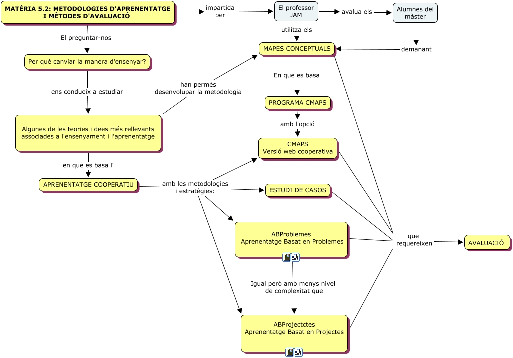 Este Cmap, tiene información relacionada con: General_materia_5_2_alberto, ABProjectctes Aprenentatge Basat en Projectes que requereixen AVALUACIÓ, APRENENTATGE COOPERATIU amb les metodologies i estratègies: ABProjectctes Aprenentatge Basat en Projectes, Alumnes del màster demanant MAPES CONCEPTUALS, Per què canviar la manera d'ensenyar? ens condueix a estudiar Algunes de les teories i dees més rellevants associades a l'ensenyament i l'aprenentatge, MATÈRIA 5.2: METODOLOGIES D'APRENENTATGE I MÈTODES D'AVALUACIÓ impartida per El professor JAM, APRENENTATGE COOPERATIU amb les metodologies i estratègies: CMAPS Versió web cooperativa, ABProblemes Aprenentatge Basat en Problemes Igual però amb menys nivel de complexitat que ABProjectctes Aprenentatge Basat en Projectes, Algunes de les teories i dees més rellevants associades a l'ensenyament i l'aprenentatge en que es basa l' APRENENTATGE COOPERATIU, PROGRAMA CMAPS amb l'opció CMAPS Versió web cooperativa, ABProblemes Aprenentatge Basat en Problemes que requereixen AVALUACIÓ, MAPES CONCEPTUALS En que es basa PROGRAMA CMAPS, El professor JAM avalua els Alumnes del màster, APRENENTATGE COOPERATIU amb les metodologies i estratègies: ABProblemes Aprenentatge Basat en Problemes, MAPES CONCEPTUALS que requereixen AVALUACIÓ, APRENENTATGE COOPERATIU amb les metodologies i estratègies: ESTUDI DE CASOS, ESTUDI DE CASOS que requereixen AVALUACIÓ, CMAPS Versió web cooperativa que requereixen AVALUACIÓ, MATÈRIA 5.2: METODOLOGIES D'APRENENTATGE I MÈTODES D'AVALUACIÓ El preguntar-nos Per què canviar la manera d'ensenyar?, Algunes de les teories i dees més rellevants associades a l'ensenyament i l'aprenentatge han permès desenvolupar la metodologia MAPES CONCEPTUALS, El professor JAM utilitza els MAPES CONCEPTUALS