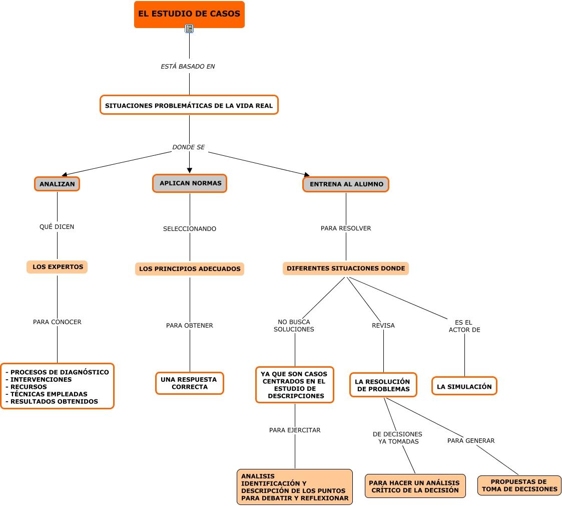 Este Cmap, tiene información relacionada con: ESTUDIO DE CASOS, ENTRENA AL ALUMNO PARA RESOLVER DIFERENTES SITUACIONES DONDE, DIFERENTES SITUACIONES DONDE NO BUSCA SOLUCIONES YA QUE SON CASOS CENTRADOS EN EL ESTUDIO DE DESCRIPCIONES, DIFERENTES SITUACIONES DONDE REVISA LA RESOLUCIÓN DE PROBLEMAS, LA RESOLUCIÓN DE PROBLEMAS PARA GENERAR PROPUESTAS DE TOMA DE DECISIONES, ANALIZAN QUÉ DICEN LOS EXPERTOS, SITUACIONES PROBLEMÁTICAS DE LA VIDA REAL DONDE SE ANALIZAN, LA RESOLUCIÓN DE PROBLEMAS DE DECISIONES YA TOMADAS PARA HACER UN ANÁLISIS CRÍTICO DE LA DECISIÓN, LOS EXPERTOS PARA CONOCER - PROCESOS DE DIAGNÓSTICO - INTERVENCIONES - RECURSOS - TÉCNICAS EMPLEADAS - RESULTADOS OBTENIDOS, SITUACIONES PROBLEMÁTICAS DE LA VIDA REAL DONDE SE ENTRENA AL ALUMNO, DIFERENTES SITUACIONES DONDE ES EL ACTOR DE LA SIMULACIÓN, APLICAN NORMAS SELECCIONANDO LOS PRINCIPIOS ADECUADOS, SITUACIONES PROBLEMÁTICAS DE LA VIDA REAL DONDE SE APLICAN NORMAS, LOS PRINCIPIOS ADECUADOS PARA OBTENER UNA RESPUESTA CORRECTA, YA QUE SON CASOS CENTRADOS EN EL ESTUDIO DE DESCRIPCIONES PARA EJERCITAR ANALISIS IDENTIFICACIÓN Y DESCRIPCIÓN DE LOS PUNTOS PARA DEBATIR Y REFLEXIONAR, EL ESTUDIO DE CASOS ESTÁ BASADO EN SITUACIONES PROBLEMÁTICAS DE LA VIDA REAL