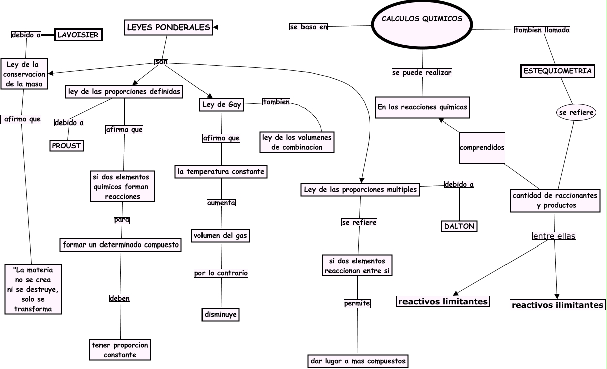 Este Cmap, tiene información relacionada con: estequiometria III, LEYES PONDERALES son Ley de Gay, LEYES PONDERALES son Ley de las proporciones multiples, LEYES PONDERALES son ley de las proporciones definidas, CALCULOS QUIMICOS se basa en LEYES PONDERALES, Ley de las proporciones multiples se refiere si dos elementos reaccionan entre si, cantidad de raccionantes y productos entre ellas reactivos ilimitantes, Ley de las proporciones multiples debido a DALTON, ley de las proporciones definidas afirma que si dos elementos quimicos forman reacciones, cantidad de raccionantes y productos entre ellas reactivos limitantes, volumen del gas por lo contrario disminuye, Ley de la conservacion de la masa afirma que "La materia no se crea ni se destruye, solo se transforma, ESTEQUIOMETRIA tambien llamada, si dos elementos reaccionan entre si permite dar lugar a mas compuestos, la temperatura constante aumenta volumen del gas, CALCULOS QUIMICOS se puede realizar En las reacciones quimicas, si dos elementos quimicos forman reacciones para formar un determinado compuesto, Ley de la conservacion de la masa debido a LAVOISIER, formar un determinado compuesto deben tener proporcion constante, cantidad de raccionantes y productos comprendidos En las reacciones quimicas, Ley de Gay afirma que la temperatura constante