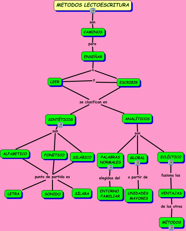 Este Cmap, tiene información relacionada con: METODOS LECTOESCRITURA, ANALÍTICOS son ECLÉCTICO, METODOS LECTOESCRITURA son CAMINOS, GLOBAL a partir de UNIDADES MAYORES, SINTÉTICOS son SILÁBICO, LEER se clasifican en SINTÉTICOS, SILÁBICO punto de partida es SÍLABA, ANALÍTICOS son PALABRAS NORMALES, ANALÍTICOS son GLOBAL, ESCRIBIR se clasifican en ANALÍTICOS, ALFABETICO punto de partida es LETRA, SILÁBICO punto de partida es LETRA, LEER se clasifican en ANALÍTICOS, SINTÉTICOS son ALFABETICO, ESCRIBIR se clasifican en SINTÉTICOS, ALFABETICO punto de partida es SONIDO, FONETICO punto de partida es SÍLABA, SILÁBICO punto de partida es SONIDO, FONETICO punto de partida es SONIDO, SINTÉTICOS son FONETICO, LEER y ESCRIBIR