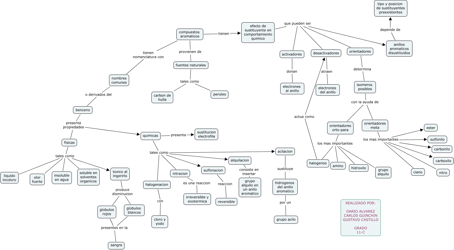 Este Cmap, tiene información relacionada con: COMPUESTOS AROMATICOS, quimicas presenta sustitucion electrofila, orientadores meta los mas importantes carbonilo, efecto de sustituyente en comportamiento quimico que pueden ser desactivadores, orientadores meta los mas importantes ciano, orientadores orto-para los mas importantes halogenos, efecto de sustituyente en comportamiento quimico que pueden ser anillos aromaticos disustituidos, orientadores meta los mas importantes ester, halogenos actua como desactivadores, isomeros posibles con la ayuda de orientadores meta, quimicas tales como alquilacion, quimicas tales como acilacion, orientadores orto-para los mas importantes hidroxilo, orientadores orto-para los mas importantes grupo alquilo, compuestos aromaticos provienen de fuentes naturales, quimicas tales como sulfonacion, fuentes naturales tales como carbon de hulla, efecto de sustituyente en comportamiento quimico que pueden ser activadores, desactivadores atraen electrones del anillo, sulfonacion reaccion reversible, efecto de sustituyente en comportamiento quimico que pueden ser orientadores