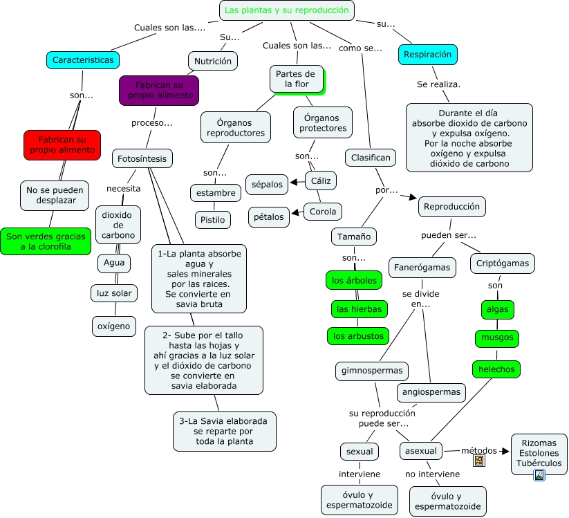 Este Cmap, tiene información relacionada con: Las plantas y su reproducción, Partes de la flor ???? Órganos protectores, Fotosíntesis necesita Agua, Criptógamas son musgos, Tamaño son... los arbustos, Fabrican su propio alimento proceso... Fotosíntesis, Tamaño son... las hierbas, Las plantas y su reproducción Su... Nutrición, Caracteristicas son... Son verdes gracias a la clorofila, Las plantas y su reproducción Cuales son las.... Caracteristicas, Órganos reproductores son... estambre, Órganos protectores son... Cáliz, Fanerógamas se divide en... gimnospermas, Reproducción pueden ser... Criptógamas, Corola ???? pétalos, Cáliz ???? sépalos, helechos ???? asexual, Fanerógamas se divide en... angiospermas, Las plantas y su reproducción su... Respiración, Fotosíntesis necesita oxígeno, Criptógamas son helechos