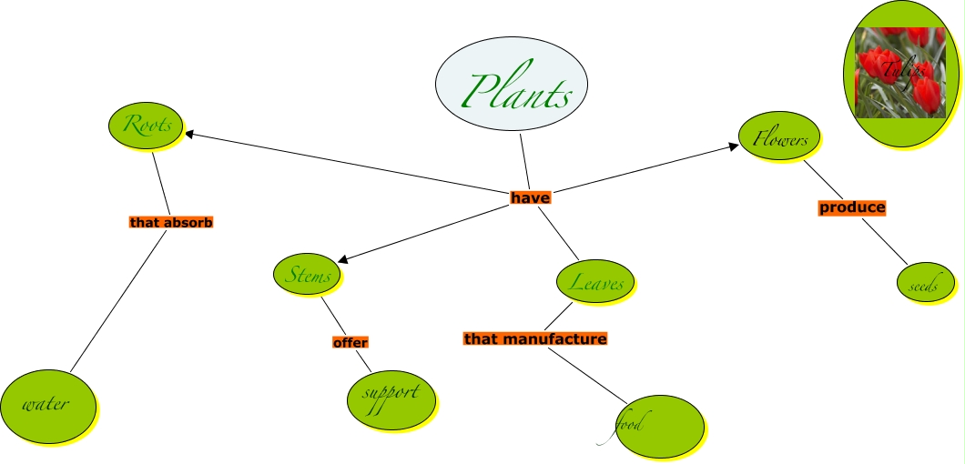 This Concept Map, created with IHMC CmapTools, has information related to: Skeleton 2, Stems offer support, Plants have Stems, Plants have Roots, Plants have Flowers, Leaves that manufacture food, Roots that absorb water, Plants have Leaves, Flowers produce seeds