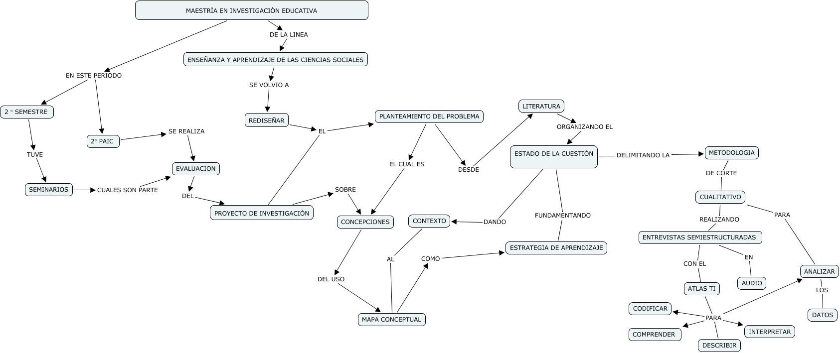 Este Cmap, tiene información relacionada con: mapa de proyecto PAIC, ENTREVISTAS SEMIESTRUCTURADAS EN AUDIO, LITERATURA ORGANIZANDO EL ESTADO DE LA CUESTIÓN, ATLAS TI PARA ANALIZAR, METODOLOGIA DE CORTE CUALITATIVO, ATLAS TI PARA COMPRENDER, ATLAS TI PARA DESCRIBIR, ANALIZAR LOS DATOS, PLANTEAMIENTO DEL PROBLEMA EL CUAL ES CONCEPCIONES, ESTADO DE LA CUESTIÓN DELIMITANDO LA METODOLOGIA, REDISEÑAR EL PLANTEAMIENTO DEL PROBLEMA, CUALITATIVO REALIZANDO ENTREVISTAS SEMIESTRUCTURADAS, CONCEPCIONES DEL USO MAPA CONCEPTUAL, MAESTRÌA EN INVESTIGACIÒN EDUCATIVA EN ESTE PERIODO 2 ° SEMESTRE, ATLAS TI PARA INTERPRETAR, PROYECTO DE INVESTIGACIÒN SOBRE CONCEPCIONES, MAESTRÌA EN INVESTIGACIÒN EDUCATIVA DE LA LINEA ENSEÑANZA Y APRENDIZAJE DE LAS CIENCIAS SOCIALES, ENTREVISTAS SEMIESTRUCTURADAS CON EL ATLAS TI, CONTEXTO AL MAPA CONCEPTUAL, ESTADO DE LA CUESTIÓN FUNDAMENTANDO ESTRATEGIA DE APRENDIZAJE, MAESTRÌA EN INVESTIGACIÒN EDUCATIVA EN ESTE PERIODO 2° PAIC