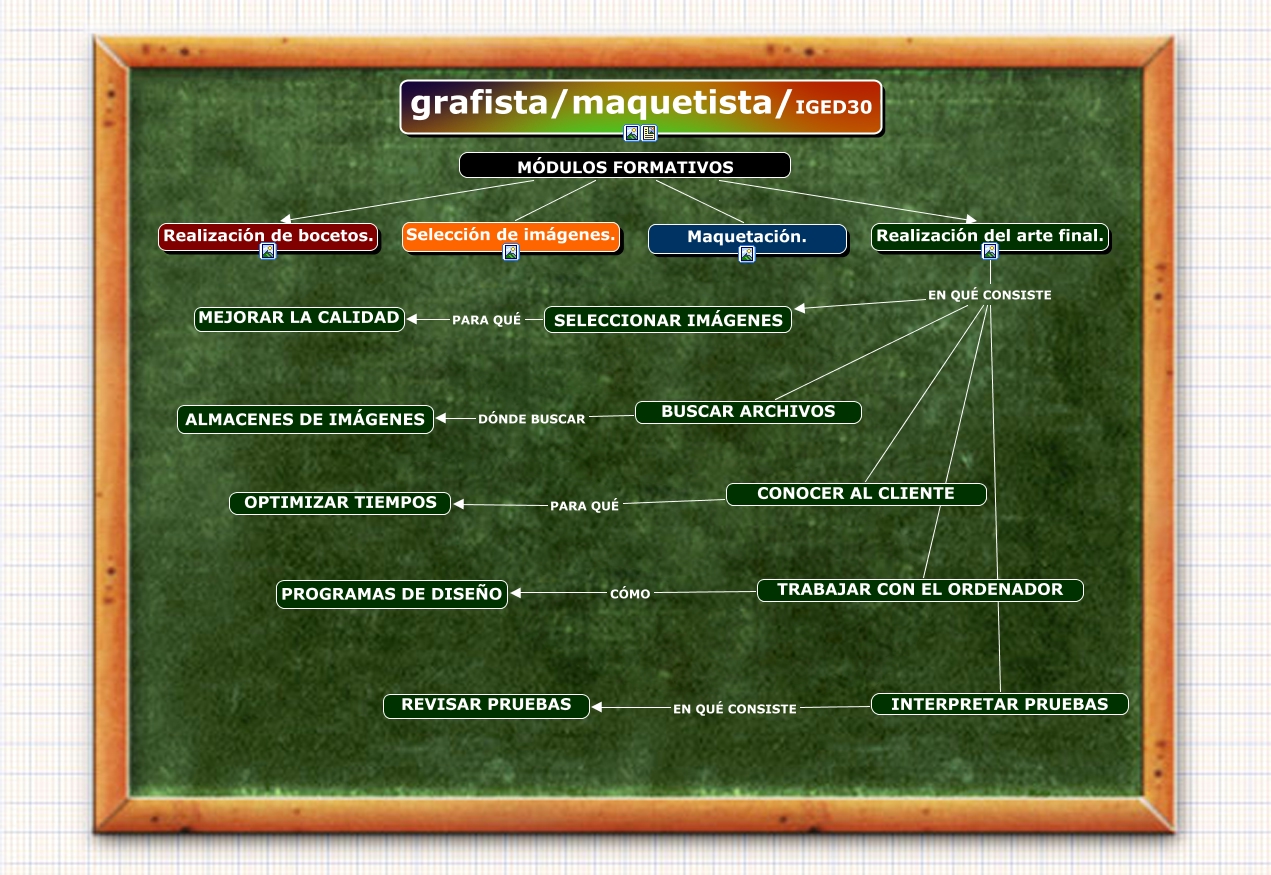 Este Cmap, tiene información relacionada con: cmac recursos didácticos2, Realización del arte final. EN QUÉ CONSISTE CONOCER AL CLIENTE, CONOCER AL CLIENTE PARA QUÉ OPTIMIZAR TIEMPOS, TRABAJAR CON EL ORDENADOR CÓMO PROGRAMAS DE DISEÑO, Realización del arte final. EN QUÉ CONSISTE SELECCIONAR IMÁGENES, SELECCIONAR IMÁGENES PARA QUÉ MEJORAR LA CALIDAD, INTERPRETAR PRUEBAS EN QUÉ CONSISTE REVISAR PRUEBAS, MÓDULOS FORMATIVOS Selección de imágenes., BUSCAR ARCHIVOS DÓNDE BUSCAR ALMACENES DE IMÁGENES, Realización del arte final. EN QUÉ CONSISTE INTERPRETAR PRUEBAS, MÓDULOS FORMATIVOS Maquetación., Realización del arte final. EN QUÉ CONSISTE BUSCAR ARCHIVOS, Realización del arte final. EN QUÉ CONSISTE TRABAJAR CON EL ORDENADOR, MÓDULOS FORMATIVOS Realización de bocetos., MÓDULOS FORMATIVOS Realización del arte final.