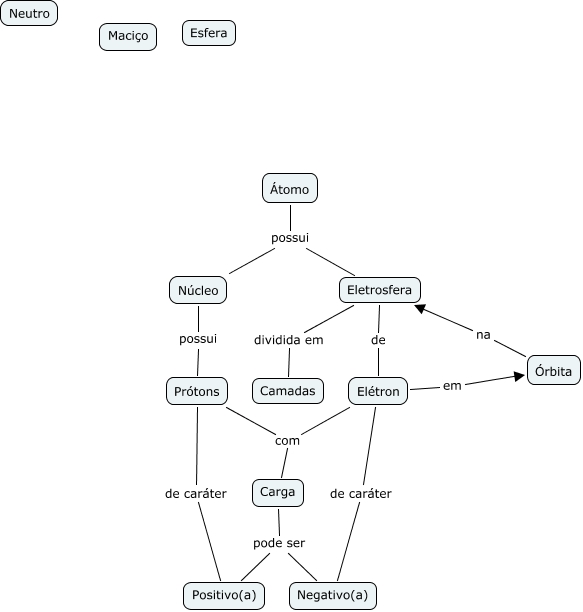 Esse mapa conceitual, produzido no IHMC CmapTools, tem a informação relacionada a: Atomo Rutherford, Eletrosfera de Elétron, Núcleo possui Prótons, Átomo possui Núcleo, Órbita na Eletrosfera, Carga pode ser Positivo(a), Carga pode ser Negativo(a), Eletrosfera dividida em Camadas, Elétron de caráter Negativo(a), Elétron em Órbita, Elétron com Carga, Prótons de caráter Positivo(a), Prótons com Carga, Átomo possui Eletrosfera