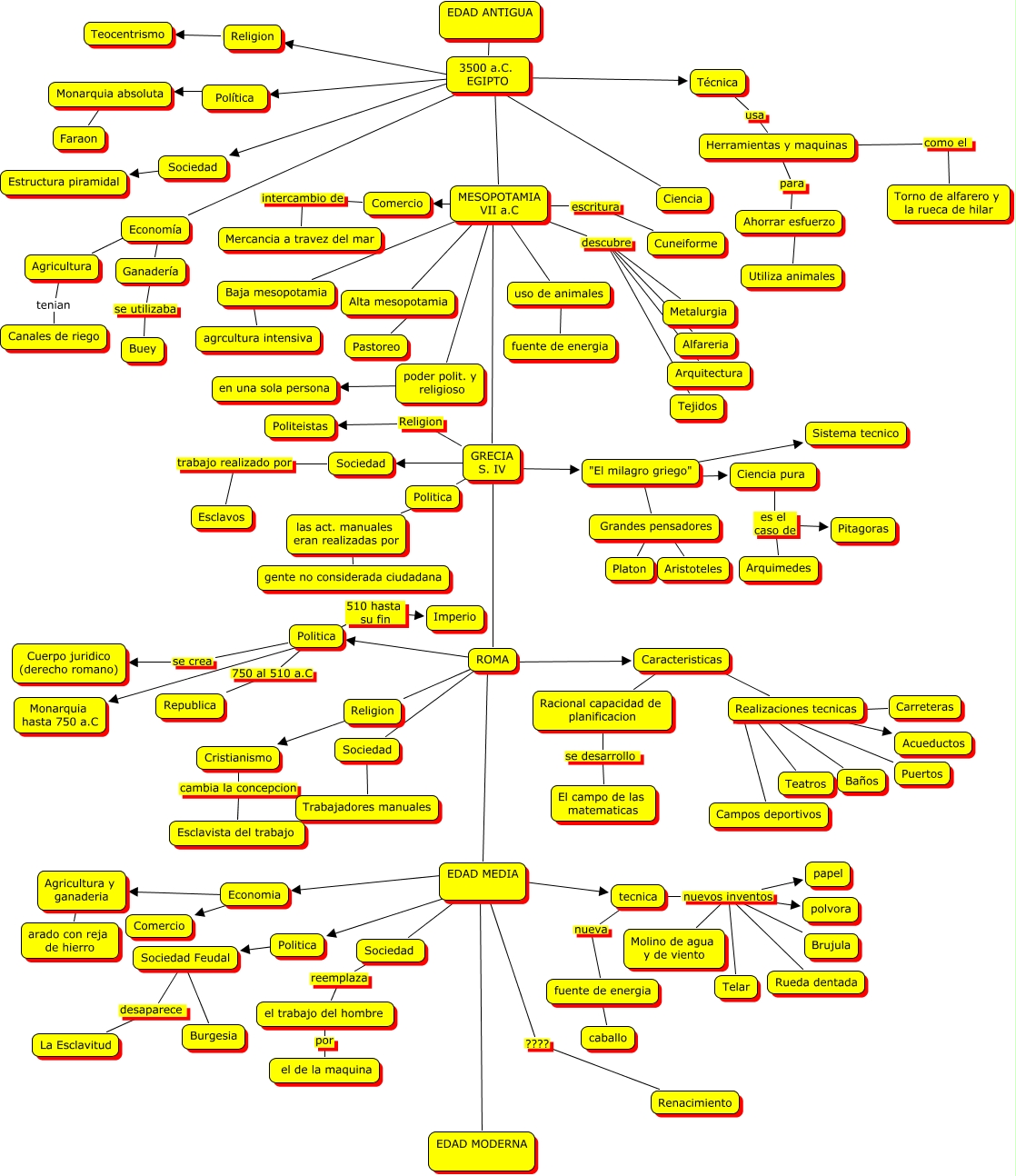 Este Cmap, tiene información relacionada con: fede - tomi .cmap, Agricultura y ganaderia ???? arado con reja de hierro, Economia ???? Agricultura y ganaderia, Realizaciones tecnicas ???? Puertos, Politica 510 hasta su fin Imperio, EDAD MEDIA ???? Renacimiento, 3500 a.C. EGIPTO ???? EDAD ANTIGUA, GRECIA S. IV Religion Politeistas, Grandes pensadores ???? Platon, MESOPOTAMIA VII a.C ???? GRECIA S. IV, "El milagro griego" ???? Ciencia pura, MESOPOTAMIA VII a.C descubre Alfareria, Realizaciones tecnicas ???? Teatros, Racional capacidad de planificacion se desarrollo El campo de las matematicas, "El milagro griego" ???? Sistema tecnico, Herramientas y maquinas para Ahorrar esfuerzo, MESOPOTAMIA VII a.C ???? Comercio, Sociedad Feudal desaparece La Esclavitud, poder polit. y religioso ???? en una sola persona, GRECIA S. IV ???? "El milagro griego", GRECIA S. IV ???? ROMA