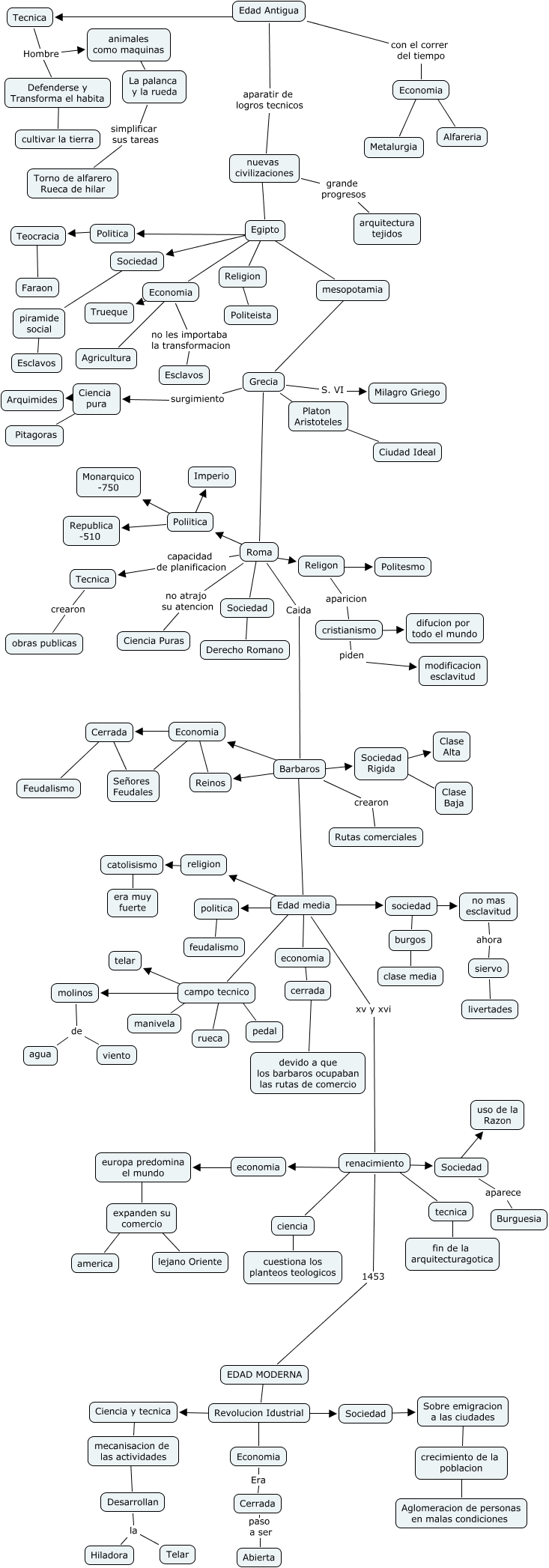 Este Cmap, tiene información relacionada con: tacno66.cmap, Edad Antigua aparatir de logros tecnicos nuevas civilizaciones, Roma ???? Religon, renacimiento ???? tecnica, Economia no les importaba la transformacion Esclavos, campo tecnico ???? pedal, politica ???? feudalismo, Edad media ???? economia, Grecia ???? Ciudad Ideal, Politica ???? Teocracia, Sociedad Rigida ???? Clase Baja, renacimiento ???? ciencia, expanden su comercio ???? america, campo tecnico ???? telar, La palanca y la rueda simplificar sus tareas Torno de alfarero Rueca de hilar, campo tecnico ???? rueca, religion ???? catolisismo, siervo livertades, Egipto ???? Politica, Señores Feudales ???? Feudalismo, Ciencia y tecnica ???? mecanisacion de las actividades
