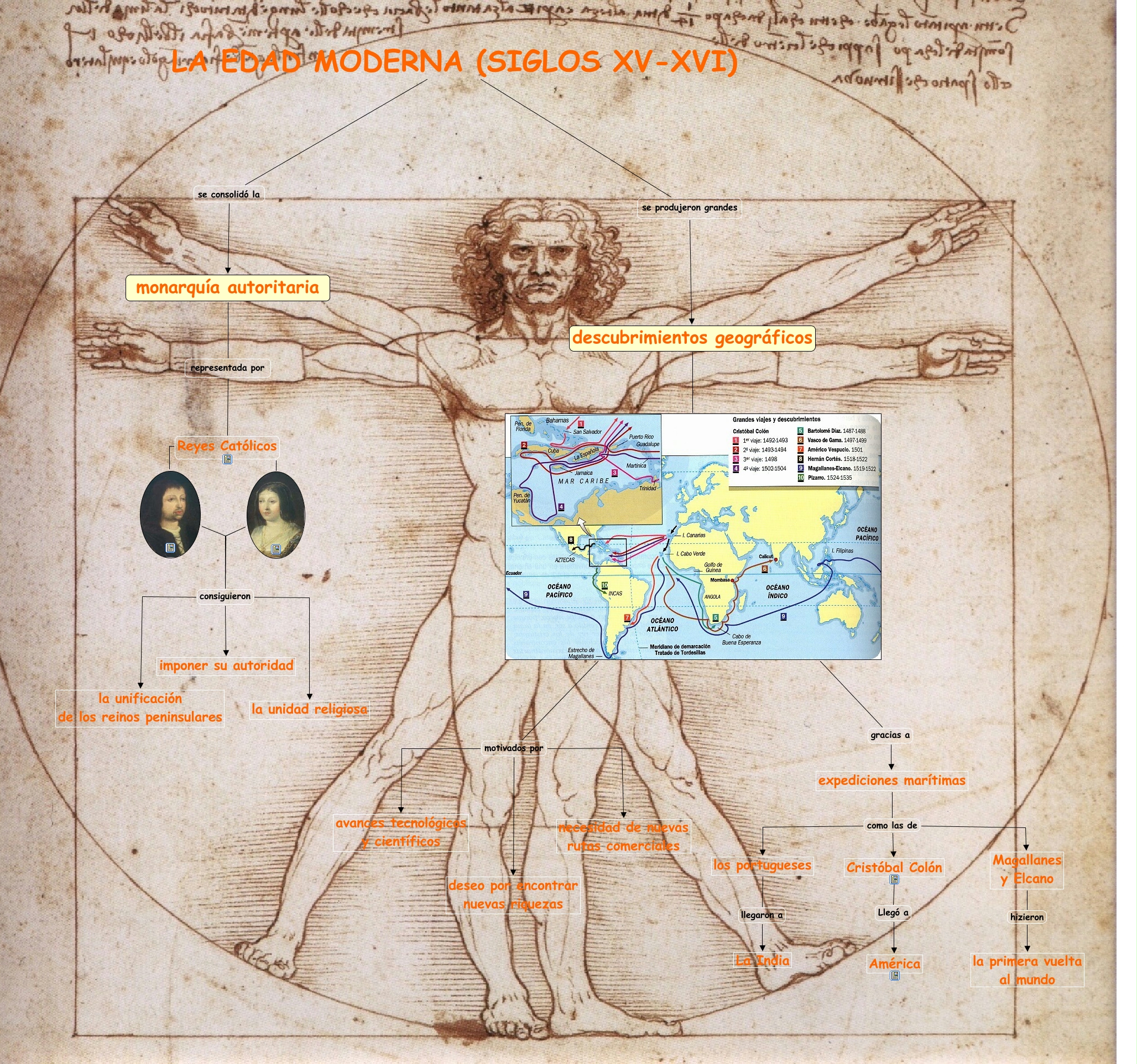 Este Cmap, tiene información relacionada con: la época de los descubrimientos, representada por Reyes Católicos, motivados por deseo por encontrar nuevas riquezas, se consolidó la monarquía autoritaria representada por, motivados por necesidad de nuevas rutas comerciales, expediciones marítimas como las de los portugueses, consiguieron la unidad religiosa, consiguieron imponer su autoridad, se produjeron grandes descubrimientos geográficos, Magallanes y Elcano hizieron la primera vuelta al mundo, consiguieron la unificación de los reinos peninsulares, consiguieron la unidad religiosa, expediciones marítimas como las de Cristóbal Colón, los portugueses llegaron a La India, consiguieron imponer su autoridad, motivados por avances tecnológicos y científicos, Cristóbal Colón Llegó a América, se consolidó la LA EDAD MODERNA (SIGLOS XV-XVI) se produjeron grandes, gracias a expediciones marítimas, Reyes Católicos, consiguieron la unificación de los reinos peninsulares