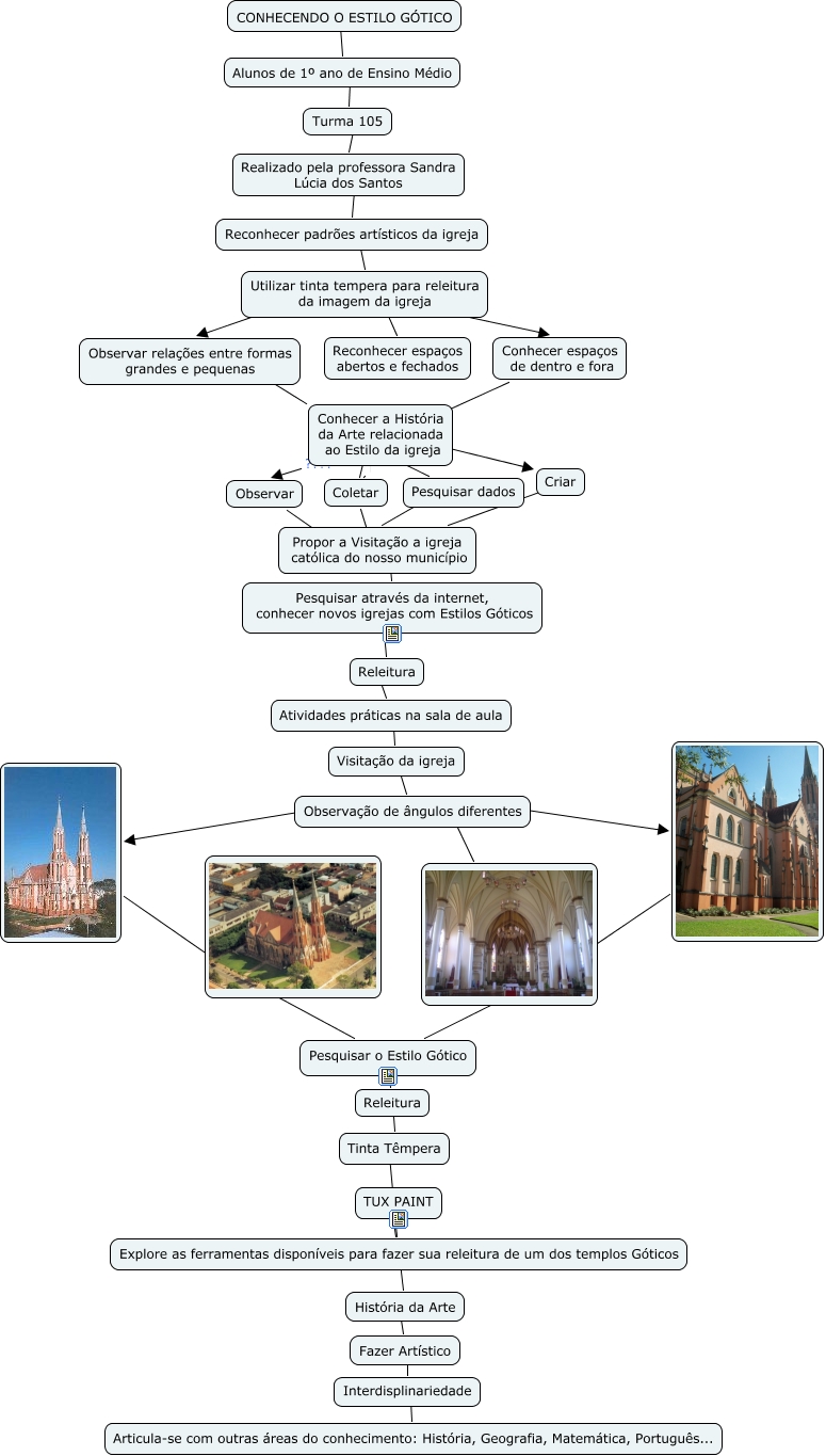 Esse mapa conceitual, produzido no IHMC CmapTools, tem a informação relacionada a: OBJETO DE APRENDIZAGEM, Reconhecer padrões artísticos da igreja ???? Utilizar tinta tempera para releitura da imagem da igreja, Turma 105 ???? Realizado pela professora Sandra Lúcia dos Santos, Visitação da igreja ???? Observação de ângulos diferentes, Utilizar tinta tempera para releitura da imagem da igreja ???? Reconhecer espaços abertos e fechados, Observar ???? Propor a Visitação a igreja católica do nosso município, Pesquisar dados ???? Propor a Visitação a igreja católica do nosso município, Pesquisar o Estilo Gótico ???? Releitura, Pesquisar através da internet, conhecer novos igrejas com Estilos Góticos ???? Releitura, Observação de ângulos diferentes ????, Atividades práticas na sala de aula ???? Visitação da igreja, Conhecer a História da Arte relacionada ao Estilo da igreja ???? Pesquisar dados, Coletar ???? Propor a Visitação a igreja católica do nosso município, ???? Pesquisar o Estilo Gótico, História da Arte ???? Fazer Artístico, Realizado pela professora Sandra Lúcia dos Santos ???? Reconhecer padrões artísticos da igreja, Explore as ferramentas disponíveis para fazer sua releitura de um dos templos Góticos ???? TUX PAINT, Releitura ???? Atividades práticas na sala de aula, Criar ???? Propor a Visitação a igreja católica do nosso município, Observar relações entre formas grandes e pequenas ???? Conhecer a História da Arte relacionada ao Estilo da igreja, Utilizar tinta tempera para releitura da imagem da igreja ???? Conhecer espaços de dentro e fora